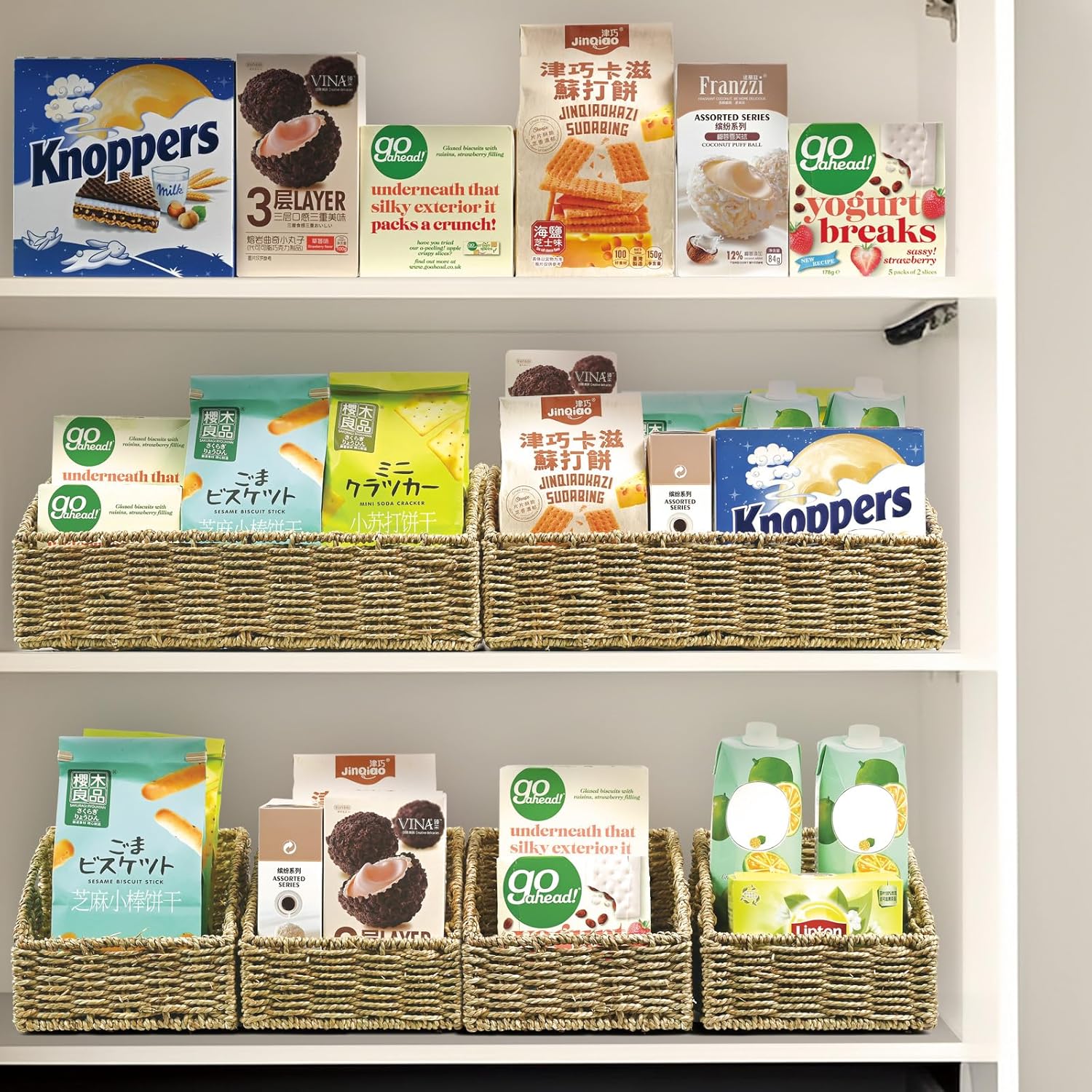 - GREAT VERSATILITY: Versatile pantry baskets provide you with a simple yet elegant way to neatly store and organize spices, vegetables, canned foods, bottles, magazines, clothes, scarves, gloves, laundry, kids' toys or other household items.