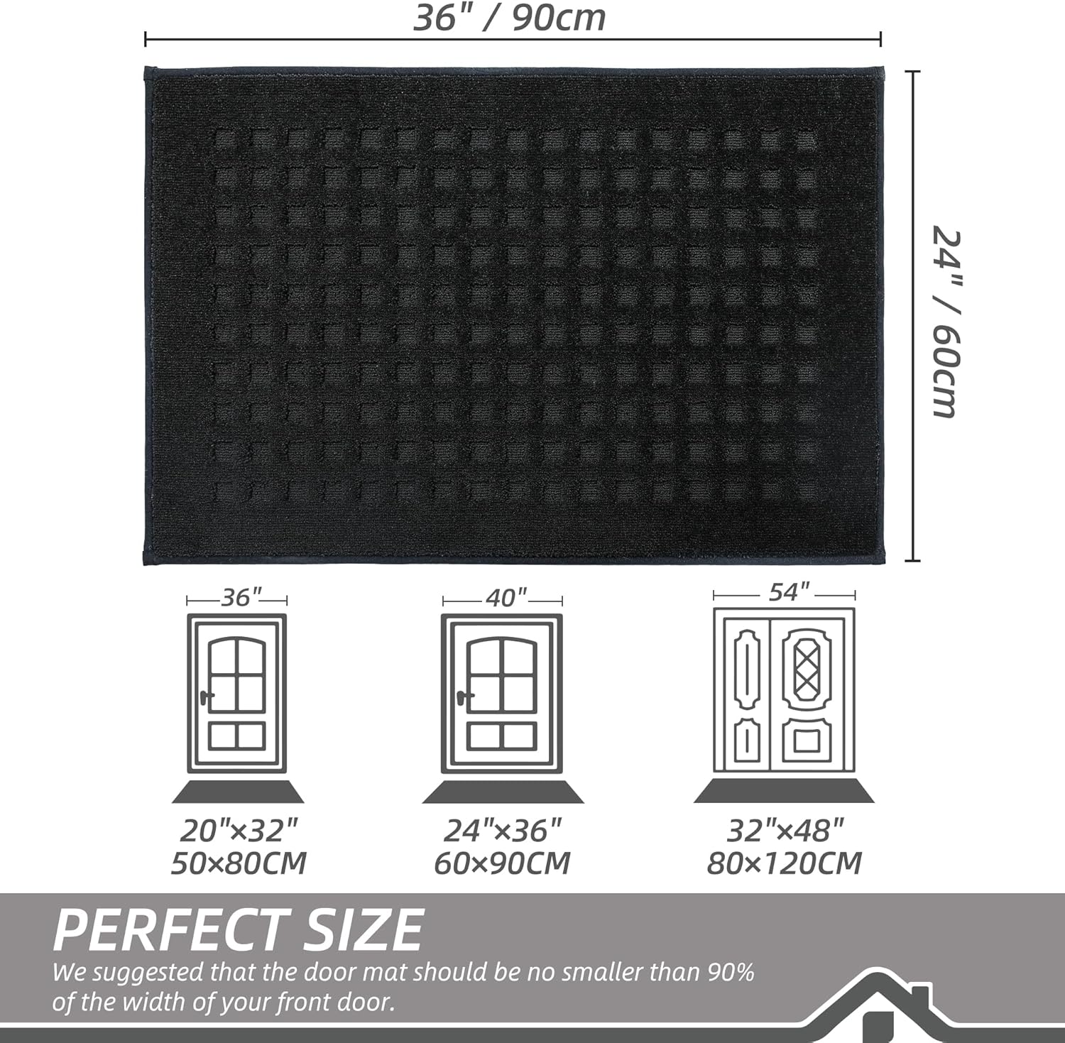 - Stylish and Low Profile Design: Fashionable Waffle patterns are suitable for most kinds of home dΓ©cor. Our doormats measure 24" x 36" x 0.45", low-profile design and reinforced overlock edges to ensure that doors won't get stuck or the door rug go curling. Note: Please confirm the height of the door gap before purchasing