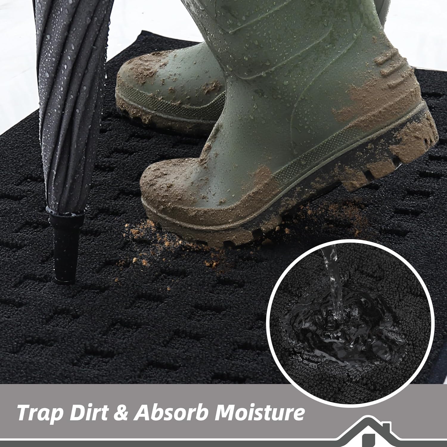 - Trap Dirt and Moisture: Door mats are made of premium Polyester and extremely dense yarns, which are extremely absorbent and stain-resistant. They absorb moisture well and quickly and also scrape dirt off the shoes, keeping the floors clean and dry. Widely used in any weather, especially rainy, snowy or muddy weather. Suitable for front door, back door, entryway, indoor entrance, etc.