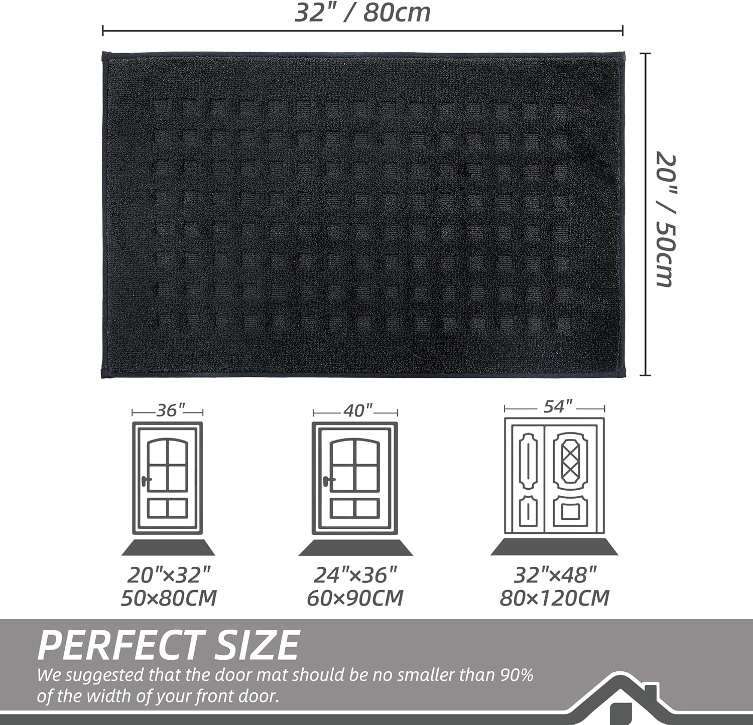 BEQHAUSE Waffle Door Mats Indoor 20"x32", Dog Mat for Muddy Paws Absorbent and Dirt Resist Floor Mats Non-Slip Washable Rugs for Entryway, Welcome Mat for Front Back Door, Muddy Wet Shoes, Black