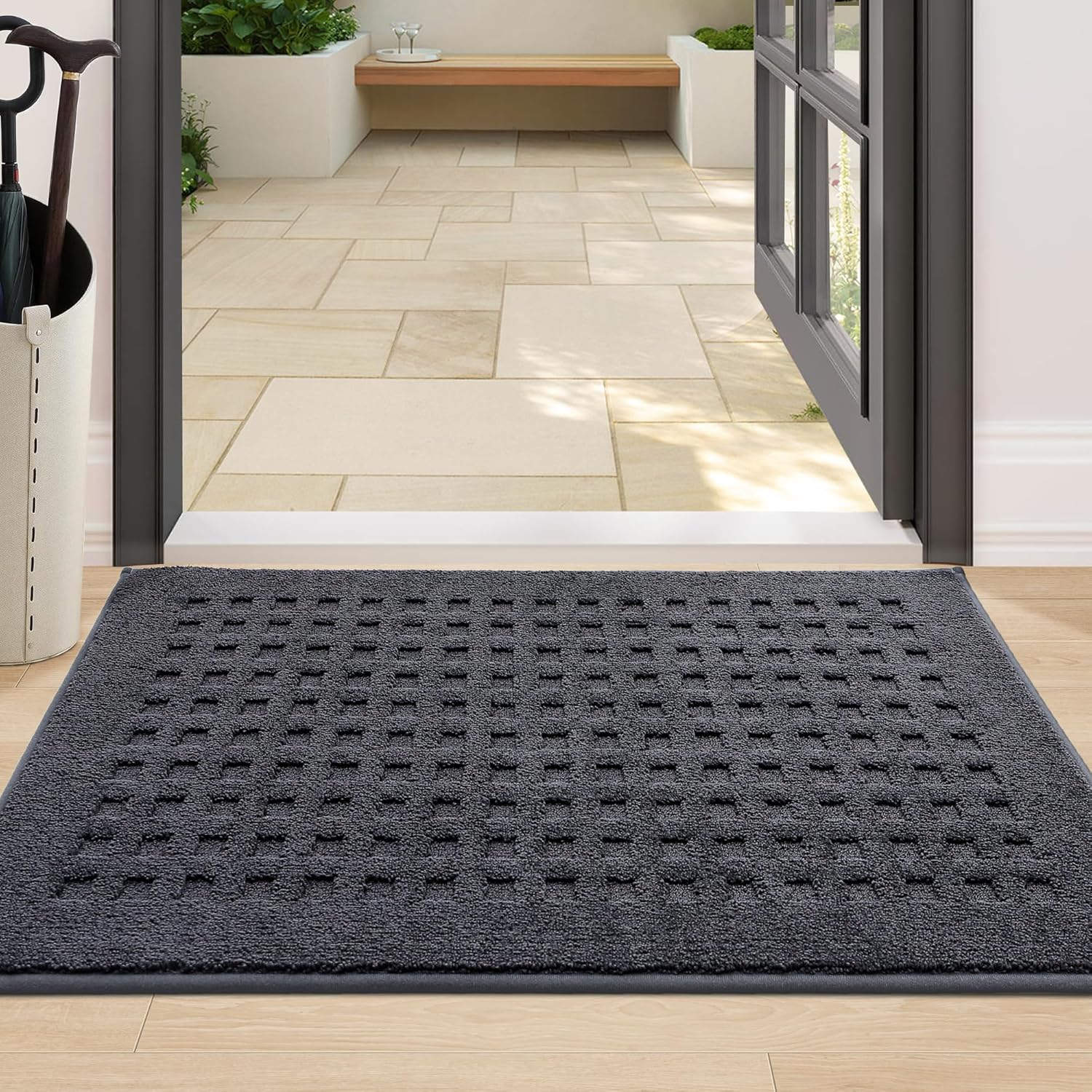 BEQHAUSE Waffle Door Mats Indoor 24"x36", Dog Mat for Muddy Paws Absorbent and Dirt Resist Floor Mats Non-Slip Washable Rugs for Entryway, Welcome Mat for Front Back Door, Muddy Wet Shoes, Dark Grey