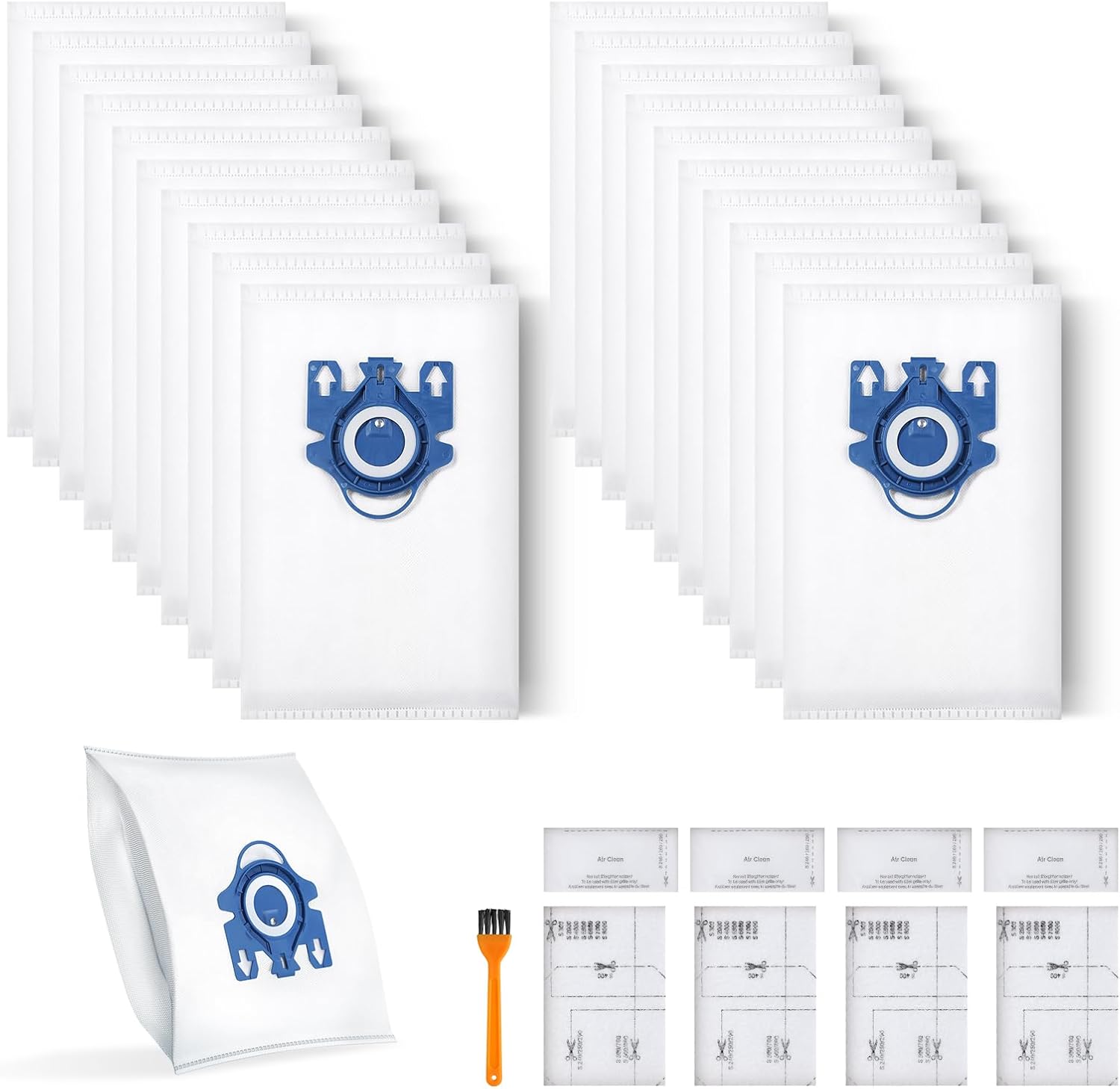 20 Pack 3D Dust Bags, Compatible with Miele GN Vacuum Bags, Replacement for Miele Classic C1 Complete C1, C2, C3, S400i S600 S2 S5 S8 Series, with 4 MP Filters, 4 AC Filters