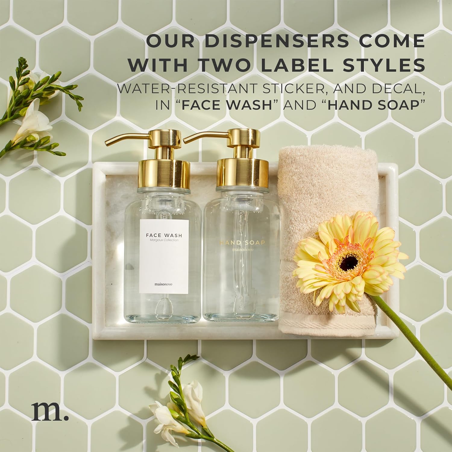 - This Set Includes: Foaming hand soap dispenser which is 14 Oz and made from lead-free and extra-thick glass along with a stainless steel, corrosion-resistant foaming soap pump. It comes with four waterproof face wash and hand soap labels.