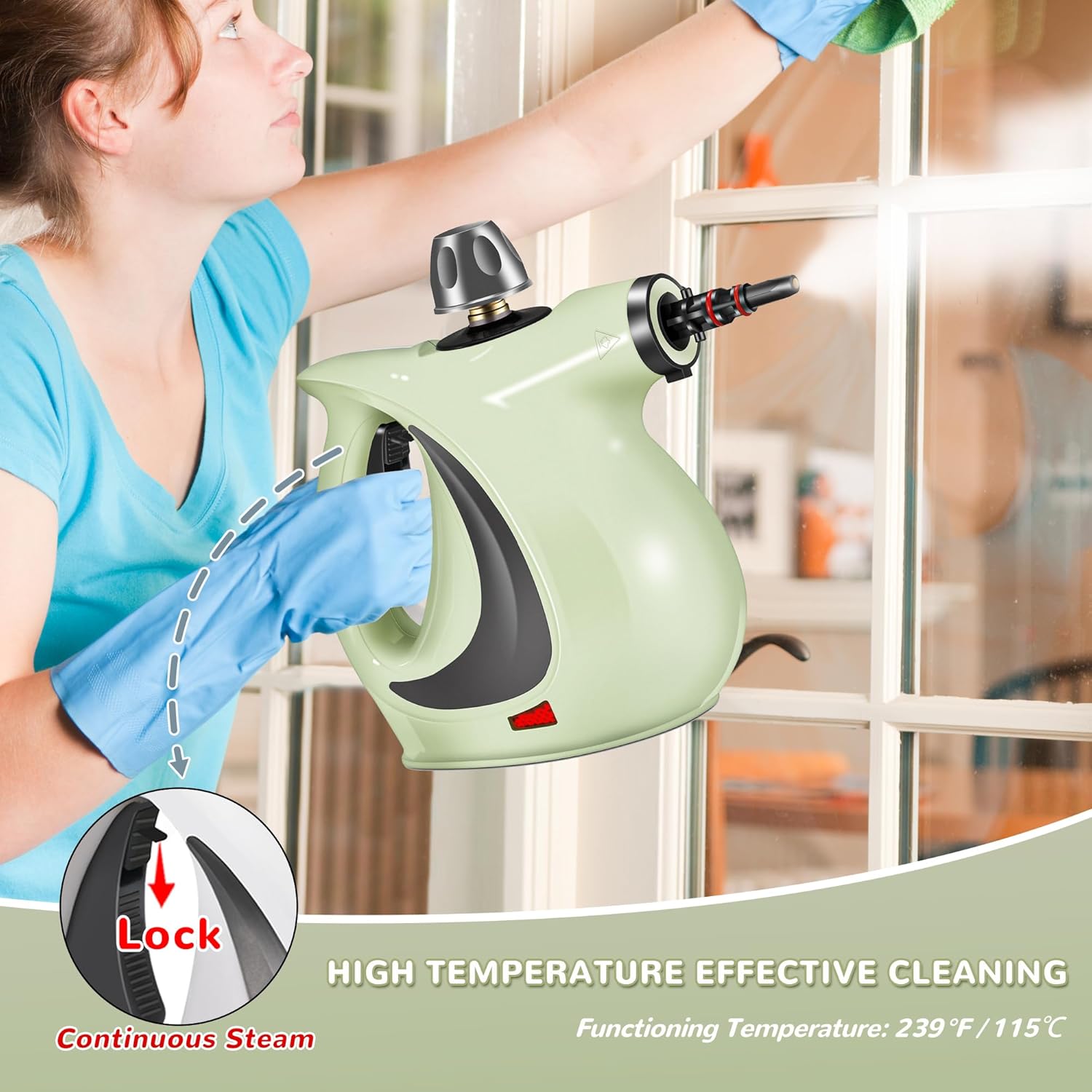 Spurgehom Handheld Steam Cleaner, Portable Steamer with Large Capacity,11-Piece Accessory Set for Floor, Car, Carpet, Upholstery, Couch, Tile, Windows Cleaning (Green)