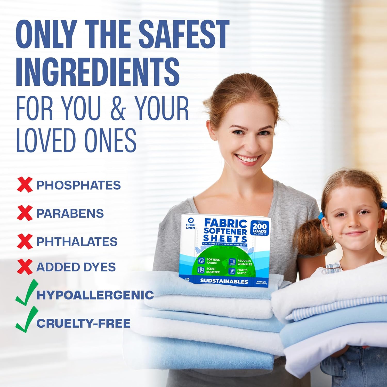 Sudstainables Fabric Softener Sheets for Washer – Laundry Softener Sheets for Washing Machines, Scented (200 loads) | Pods and Liquid Alternative