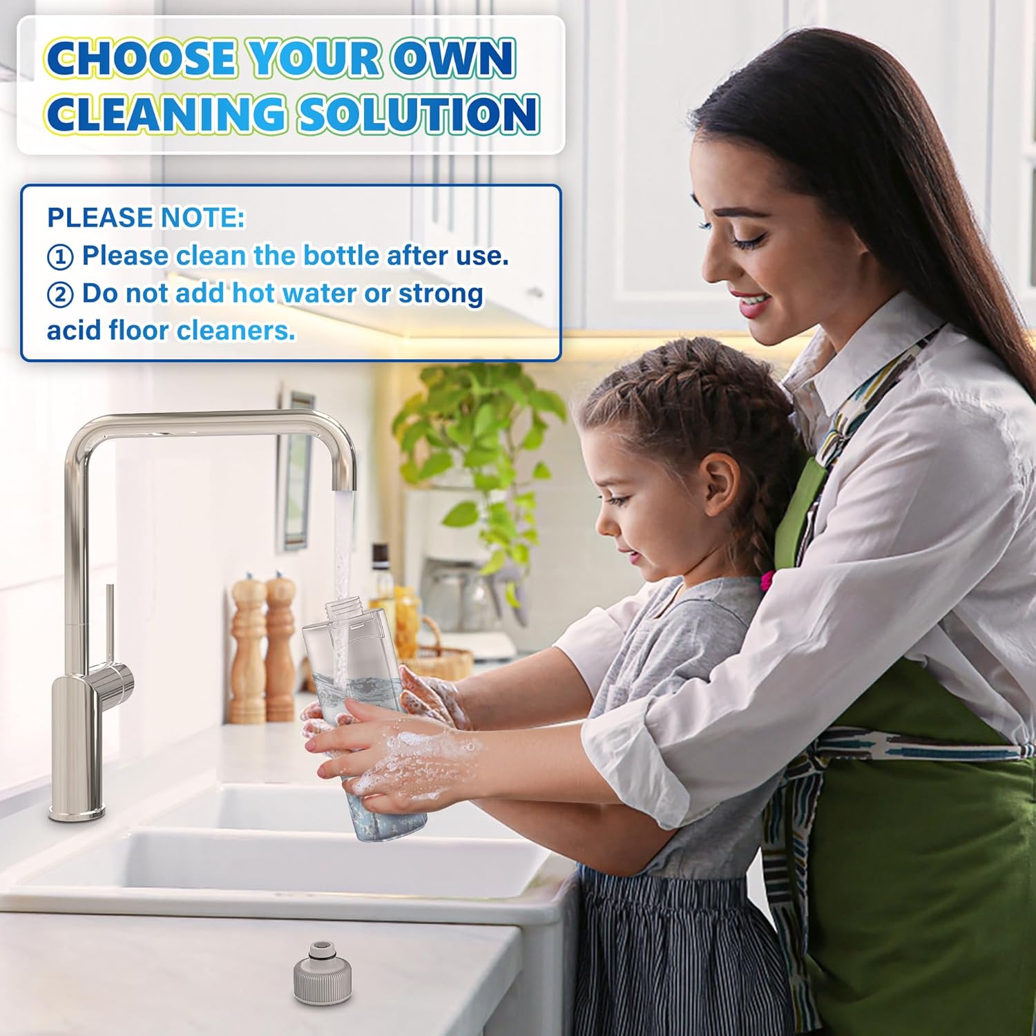 - ăMEXERRIS Tipsă:â˘Please don't fill boiling or impurity water, strong acid,alkali detergent into the bottle of the wet mop.âŁPlease fully dilute solutions with plain water,because concentrated solutions may corrode mop internal parts or some floor types. ⤠There are two small silicone plugs on the bottle cap of our spray mop. Please be careful not to lose them when cleaning the bottle to prevent the bottle from leaking.