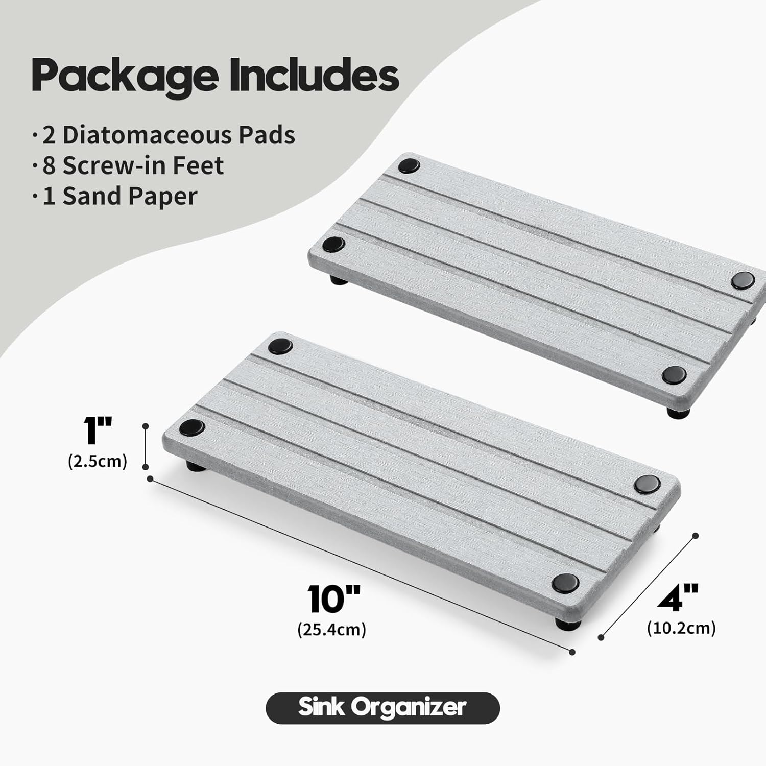 - 【Fast Drying Sink Organizer】Keep your kitchen and bathroom countertops neatly arranged with this quick-drying stone sink caddy. This holder rack absorbs moisture quickly and is specially designed for your soaps, sponges, or brushes