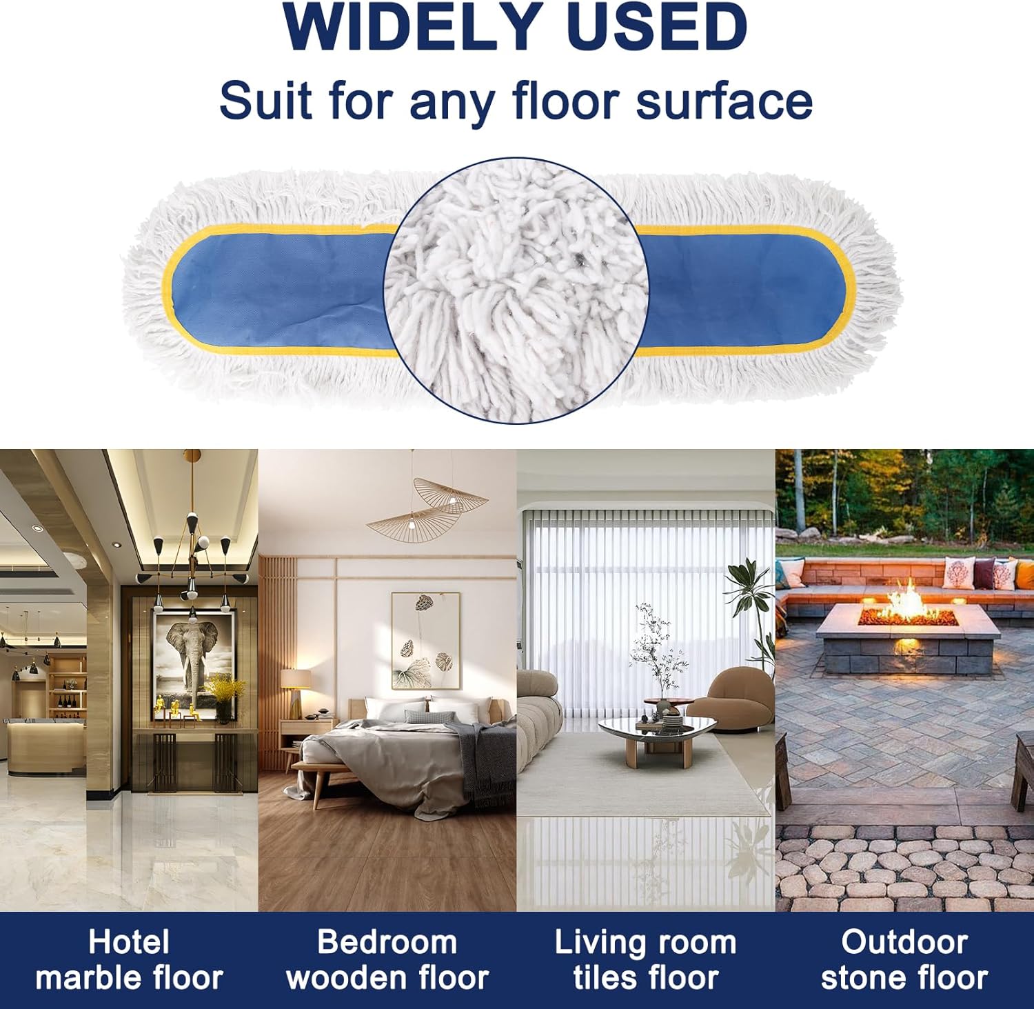 - ⭐24 Inch Large Commercial Dust Mop Head: Super absorbent, deep cleans and absorbs dirt, water, dust, hair, debris, etc., perfect for use as a wet mop or dry mop, saves your time, machine washable and reusable, helping you save money and reduce waste!