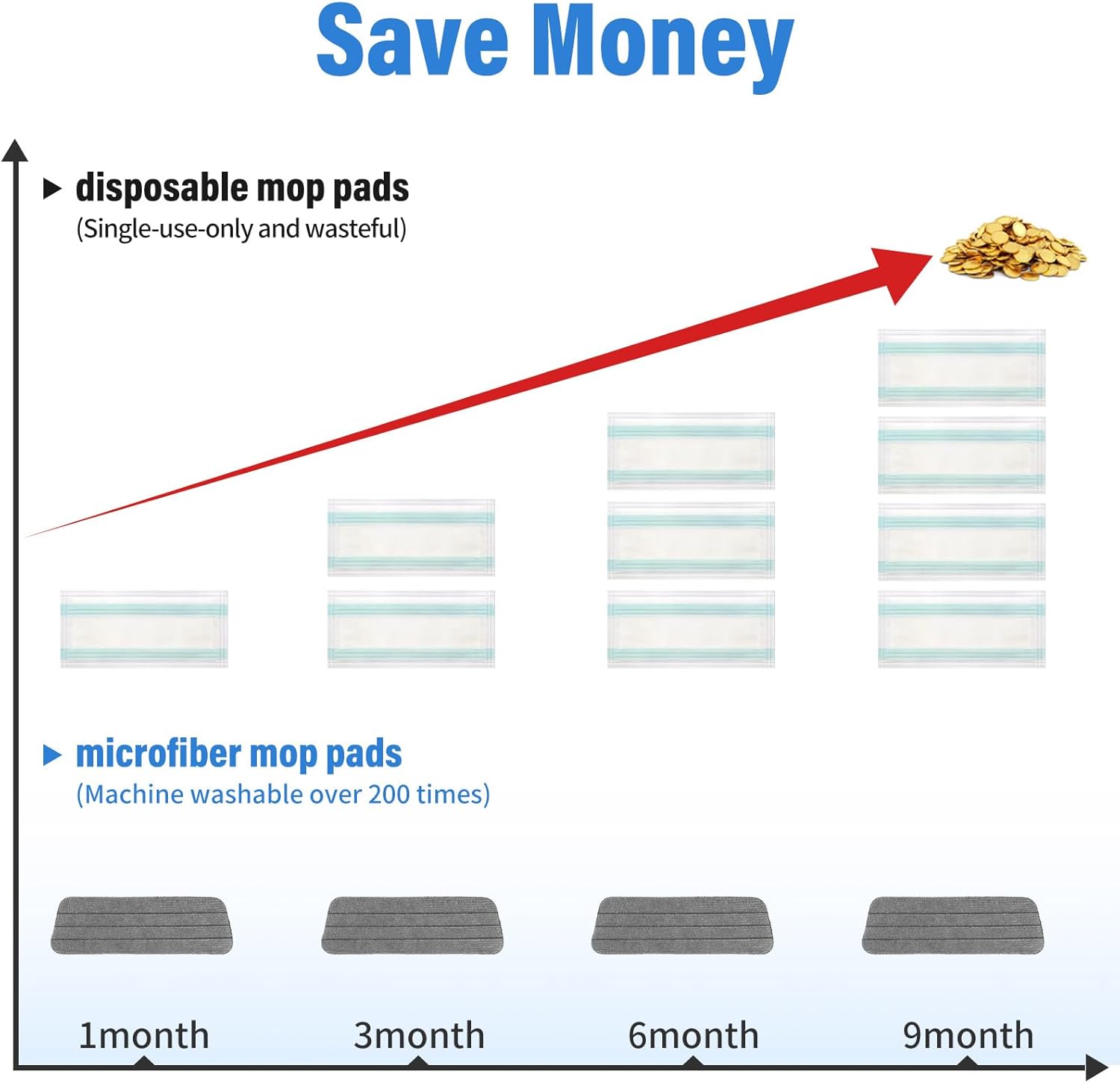 - Washable and Reusable-The back pad can be connected with the mop head by hook, which is convenient for disassembly.The mop pad can be washed over and over again, machine washable, hand washable, and then reused. Never use bleach.