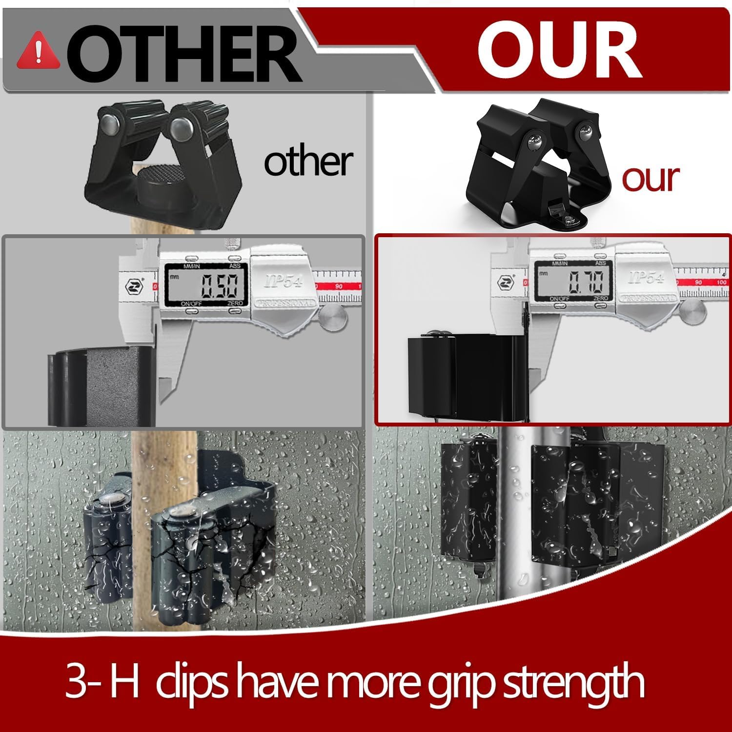 - Waterproof and non-slip: 3-H broom holder wall spring steel is 0.7 mm thick instead of 0.5 mm. Compared to the similary broom holder, it is stronger and more durable. Thanks to the non-slip rubber wheels of the broom holder, everything finds a secure hold.
