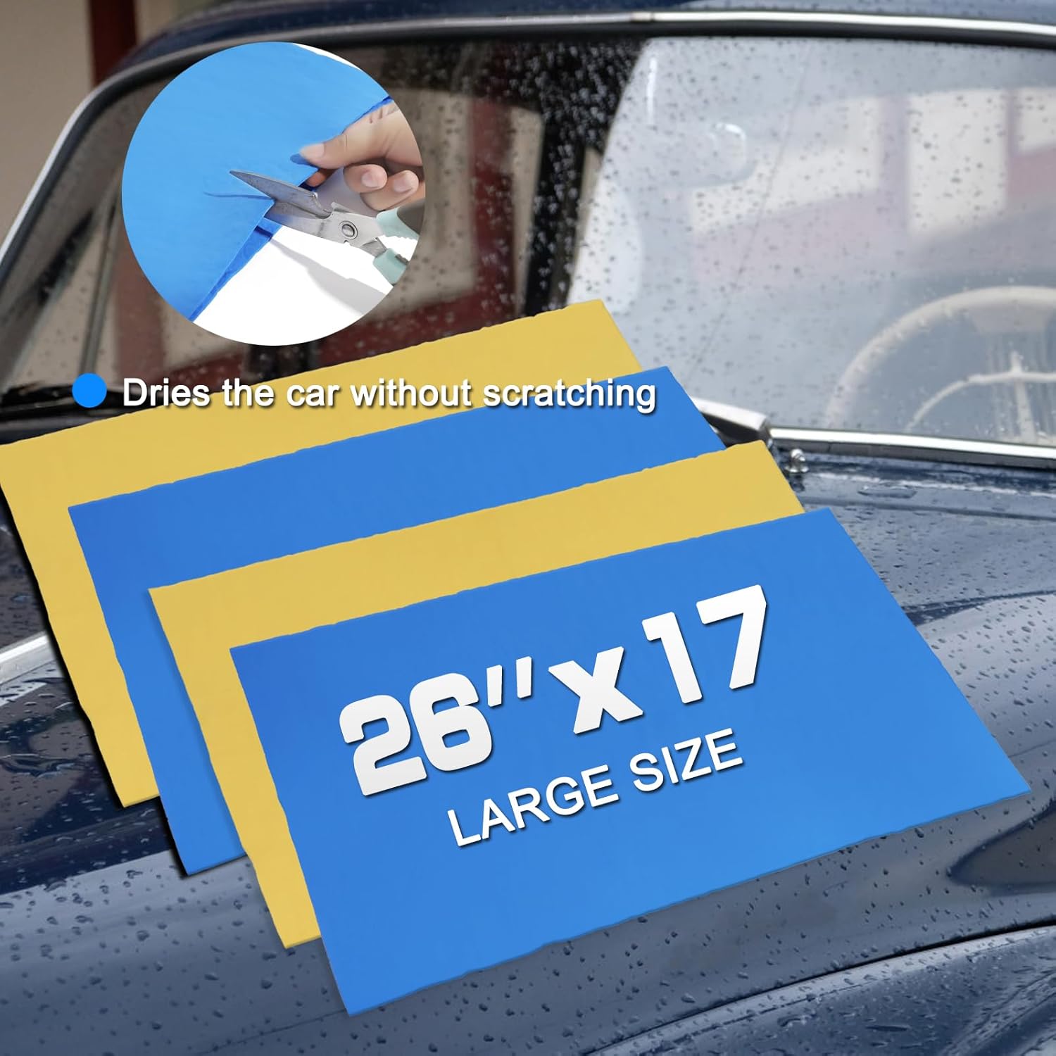 - 26"X17" Large car drying towel, reusable soft car wash cloth, chamois cloth for car, dust remove, scratch/spot/streak free.