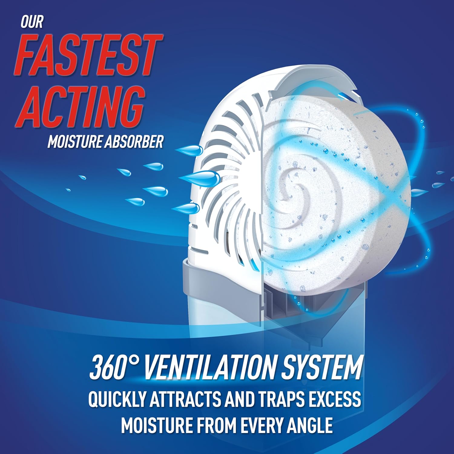 - INNOVATIVE DESIGN: 360-degree ventilation system enhances airflow and maximizes moisture absorbing surface area for a fast-acting solution. Patented time-release fragrance technology and spill-resistant design adds convenient efficiency.