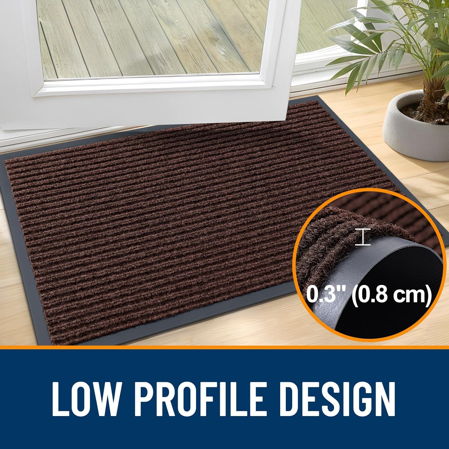 OLANLY Front Door Mat Indoor Outdoor Entrance, Waterproof Heavy Duty Doormat, Fade Resistant, Low Profile, Easy Clean Patio Porch Welcome Floor Mats for Entry, 59x35, Brown