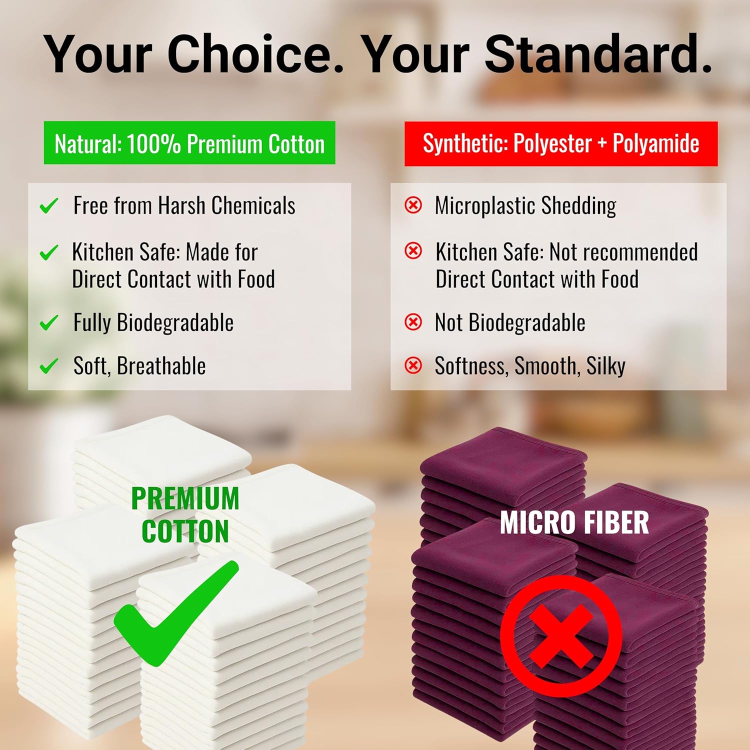 - MULTIPURPOSE: Their lint-free pure ring-spun cotton composition makes them perfect for drying glassware, hands and surfaces. Moreover, they excel at tasks like cheese straining, salad spinning, and even serving as reliable dough covers for baking.