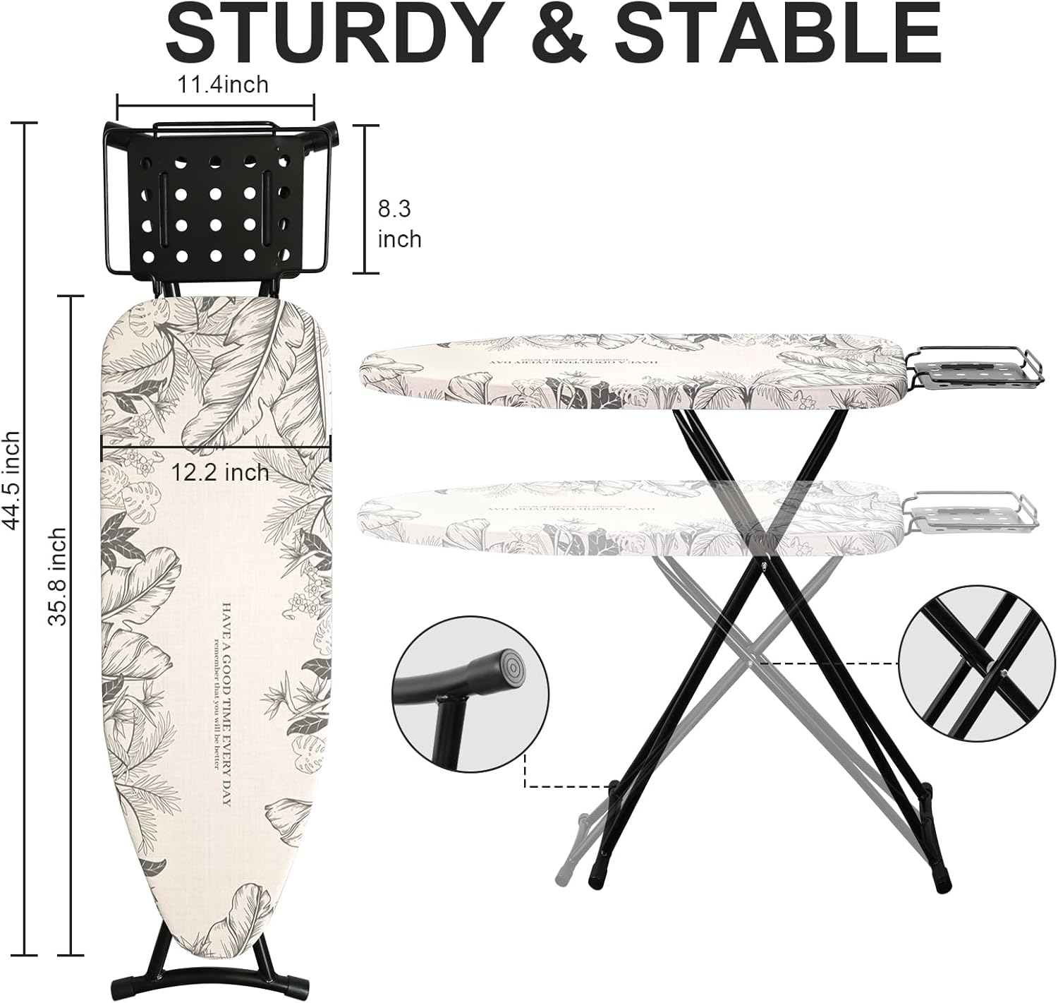 Ironing Board,Foldable Ironing Board Adjustable Height Compact Iron Board Thick Steel Tube Iron Board with Holder,Replacing Cloth Cover and Mini Handheld Gloves(Leaf Print)