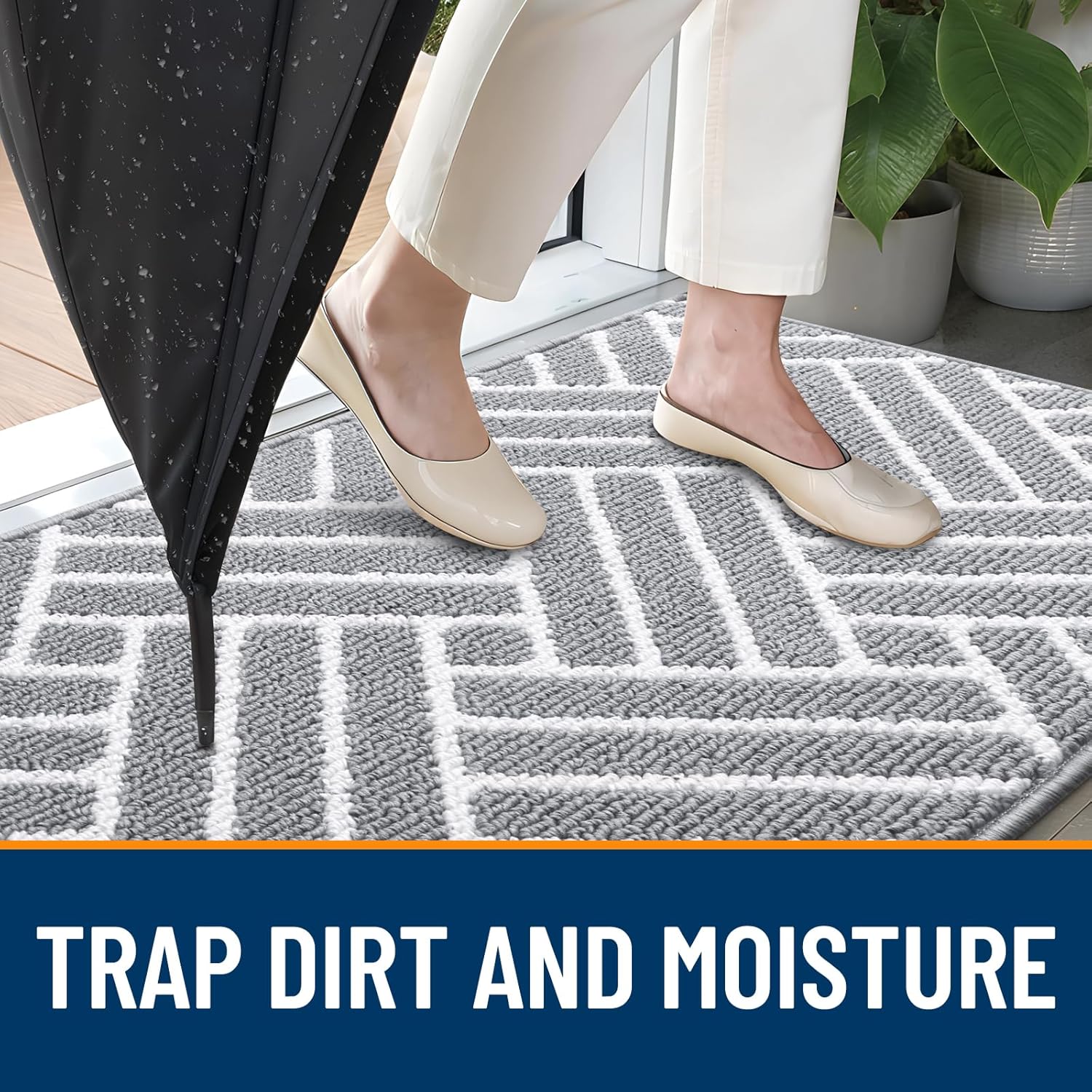 OLANLY Indoor Door Mat, 36x24 Inch, Dirt Resistant and Absorbent, Non-Slip Rubber Backing Floor Mats, Easy Clean Low-Profile Doormat for Entryway, Front Door, and Inside Entrance, Light Grey