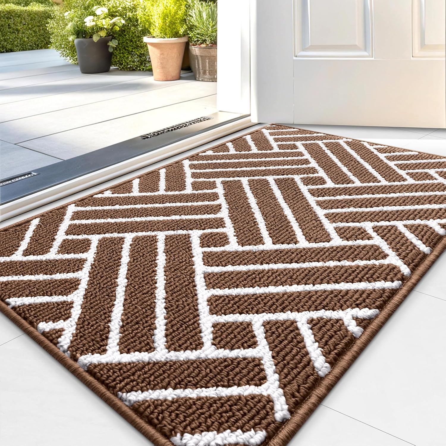 OLANLY Indoor Door Mat, 32x20 Inch, Dirt Resistant and Absorbent, Non-Slip Rubber Backing Floor Mats, Easy Clean Low-Profile Doormat for Entryway, Front Door, and Inside Entrance, Coffee
