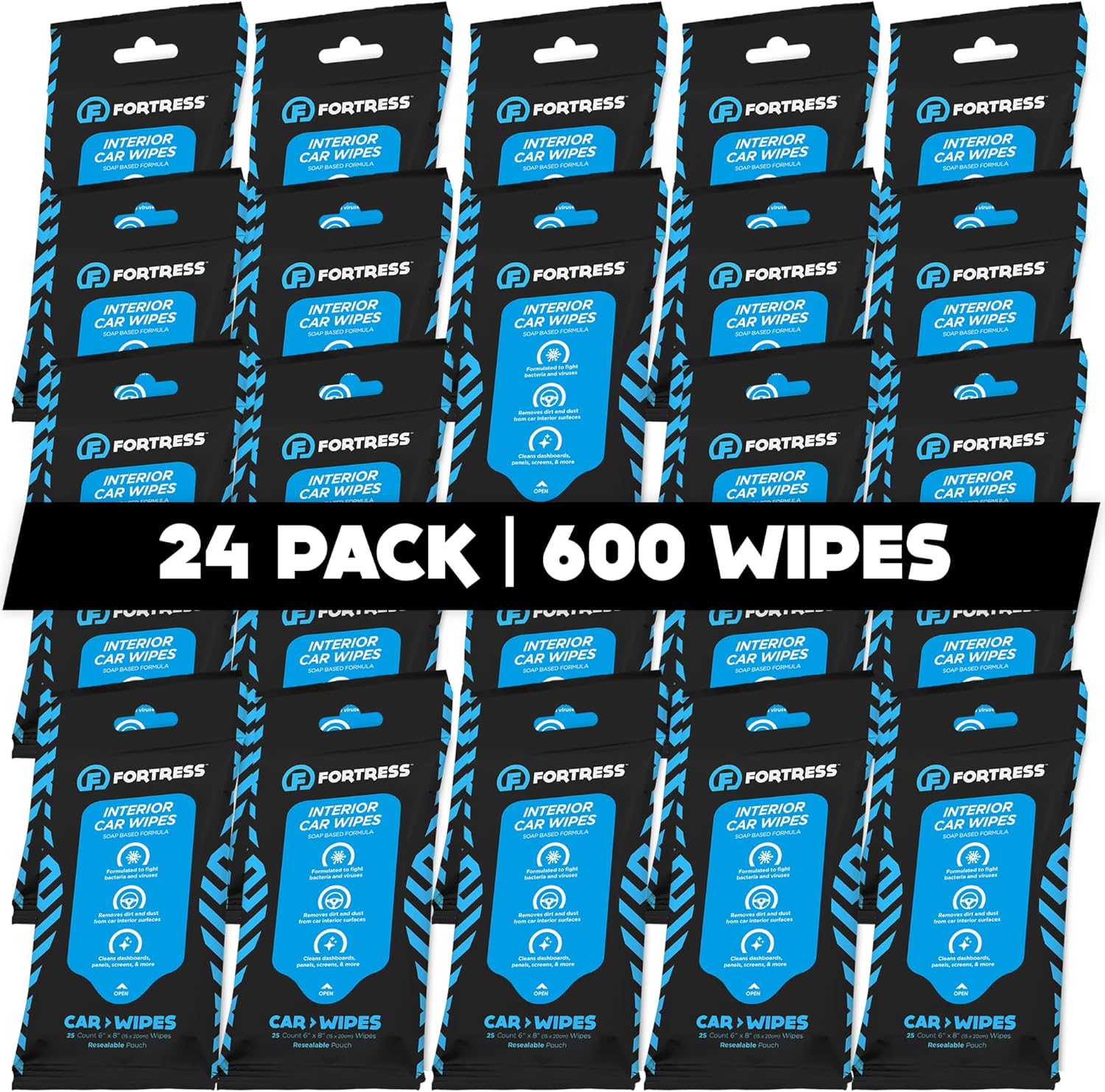 Fortress Car Interior Wipes (25 ct, Pack of 24) for Car Interior Cleaning, Dashboard, Seats, Detailing, and Steering Wheel [Travel Size] Skin-Safe Car Interior Cleaner Supplies
