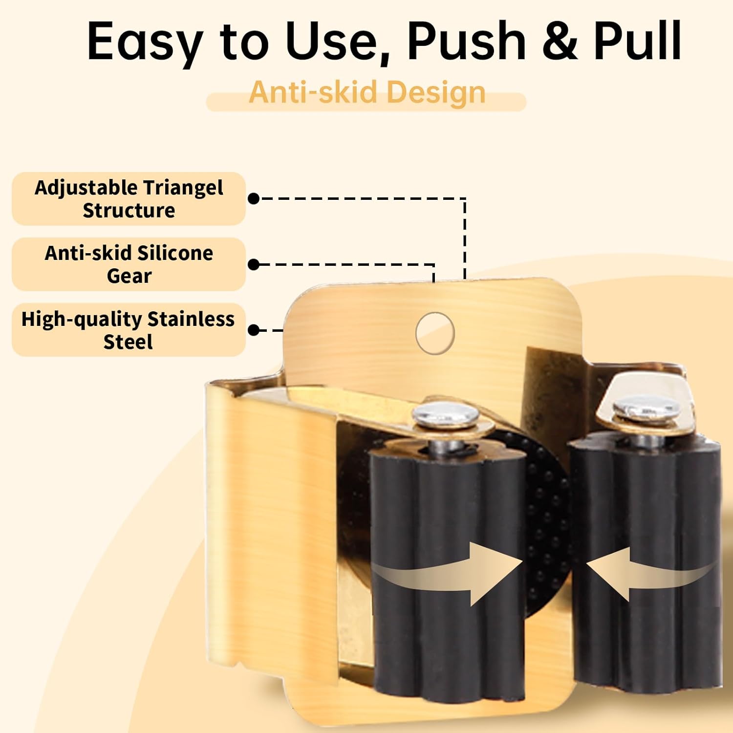 - [Non-slip design] The broom closet organizer are design with triangle-buckle and petal-shaped rubber rollers for adjusting size automatically based on different thickness of the handles, which can provide strong grip and friction to prevent object slipping, no need to worry about the broom and dustpan falling off after being stained with water either.