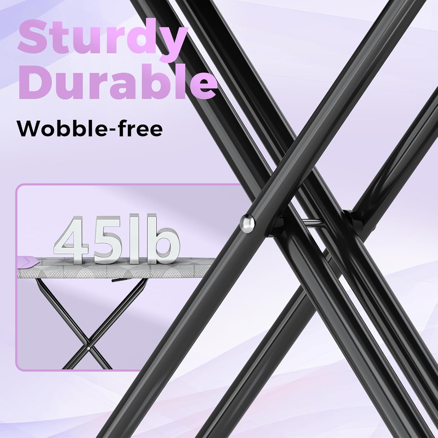 - Practical & Exquisite design: Our iron board with heat-resistant silicone iron mat, place the iron smoothly and protects the ironing board surface from the heat of the iron. Constructed with a high-quality metal frame, sturdy leg supports and adjustable foot cap, this ironing table remains stable and wobble-free during use