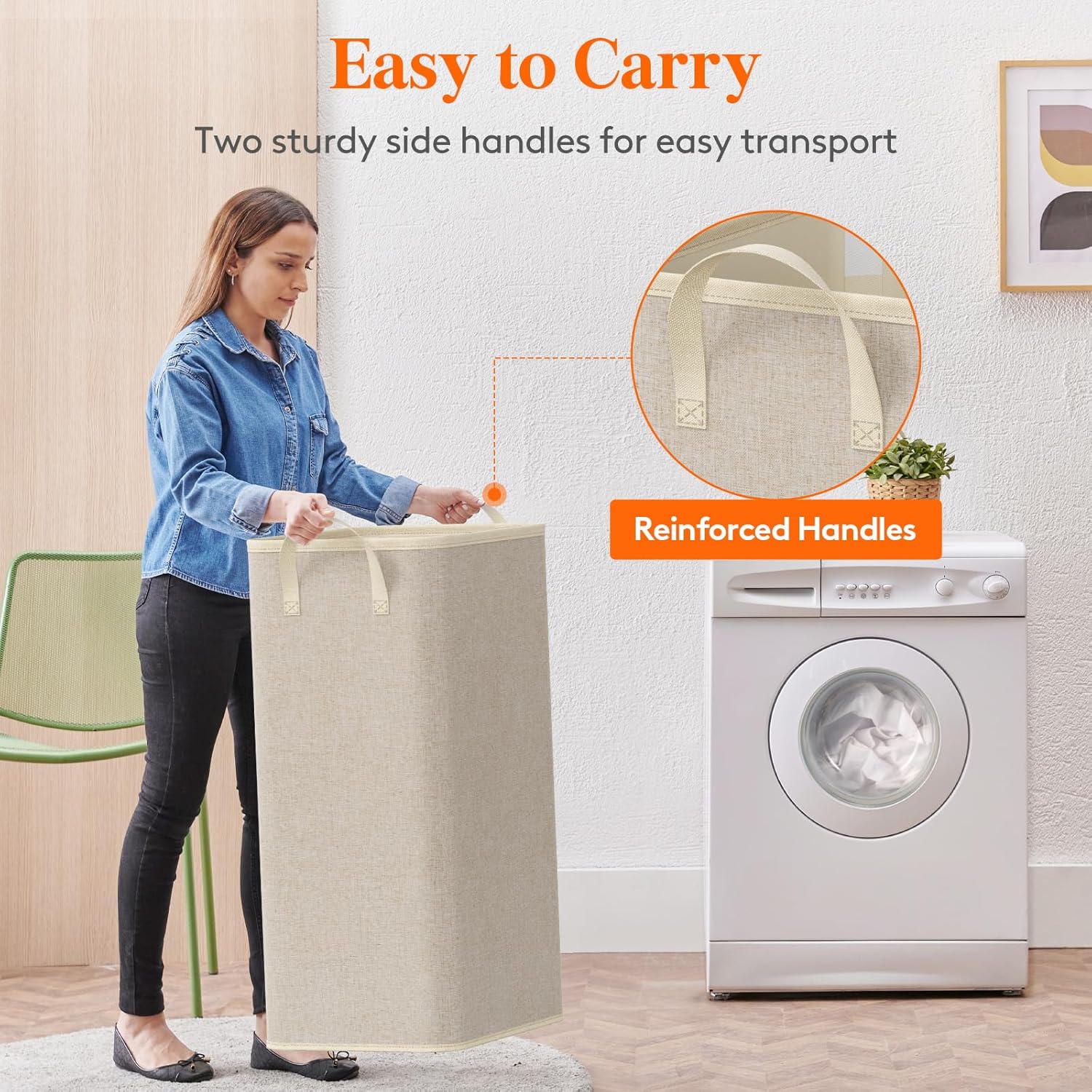 - Easy to Carry: Featuring two reinforced nylon handles, this dirty clothes hamper is a breeze to carry around, even when fully loaded; with a generous height of 29.5'', you can reach your ladunry without bending over