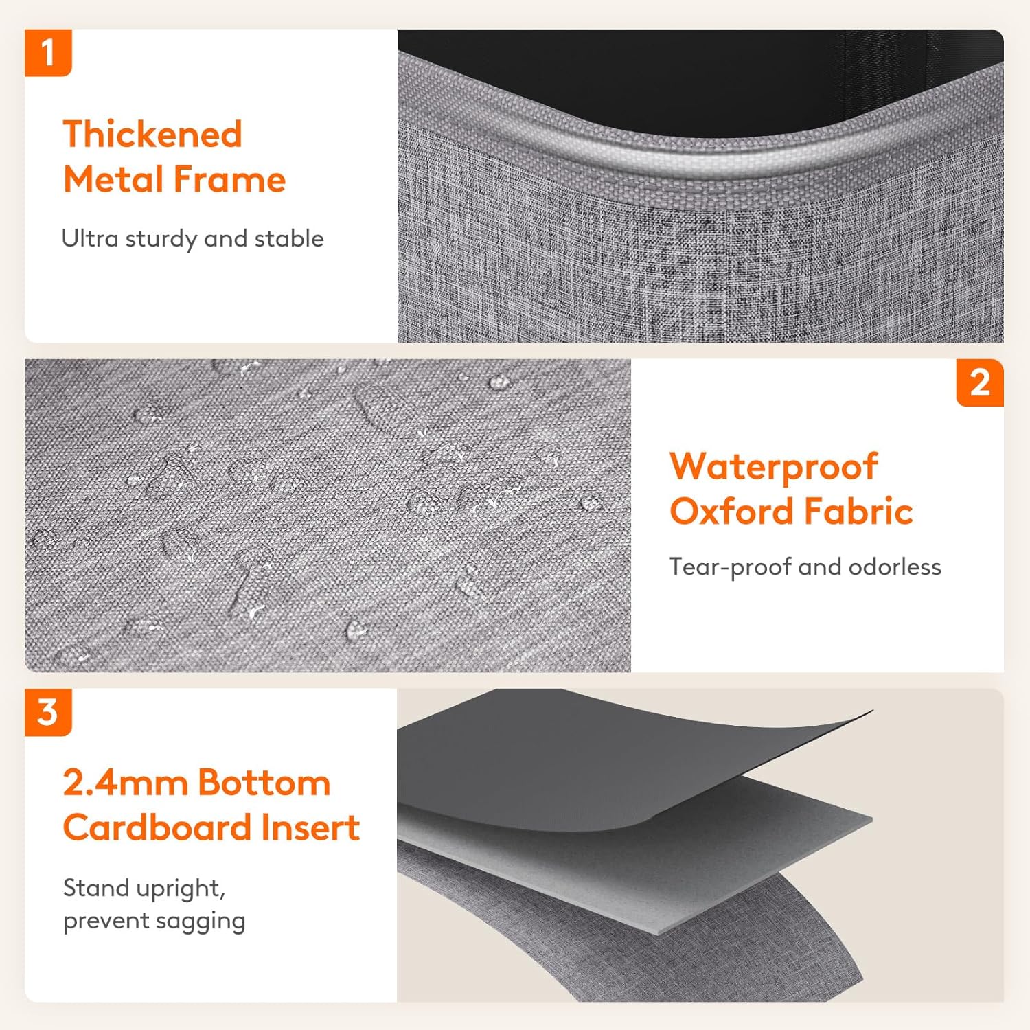 - Robust and Long-lasting: Made of premium cationic fabric with thickened polyester lining that is waterproof, odorless, and tear-proof for long-term use; four reinforced support rods and a thickened metal frame ensure a ultral stable structure for upright standing