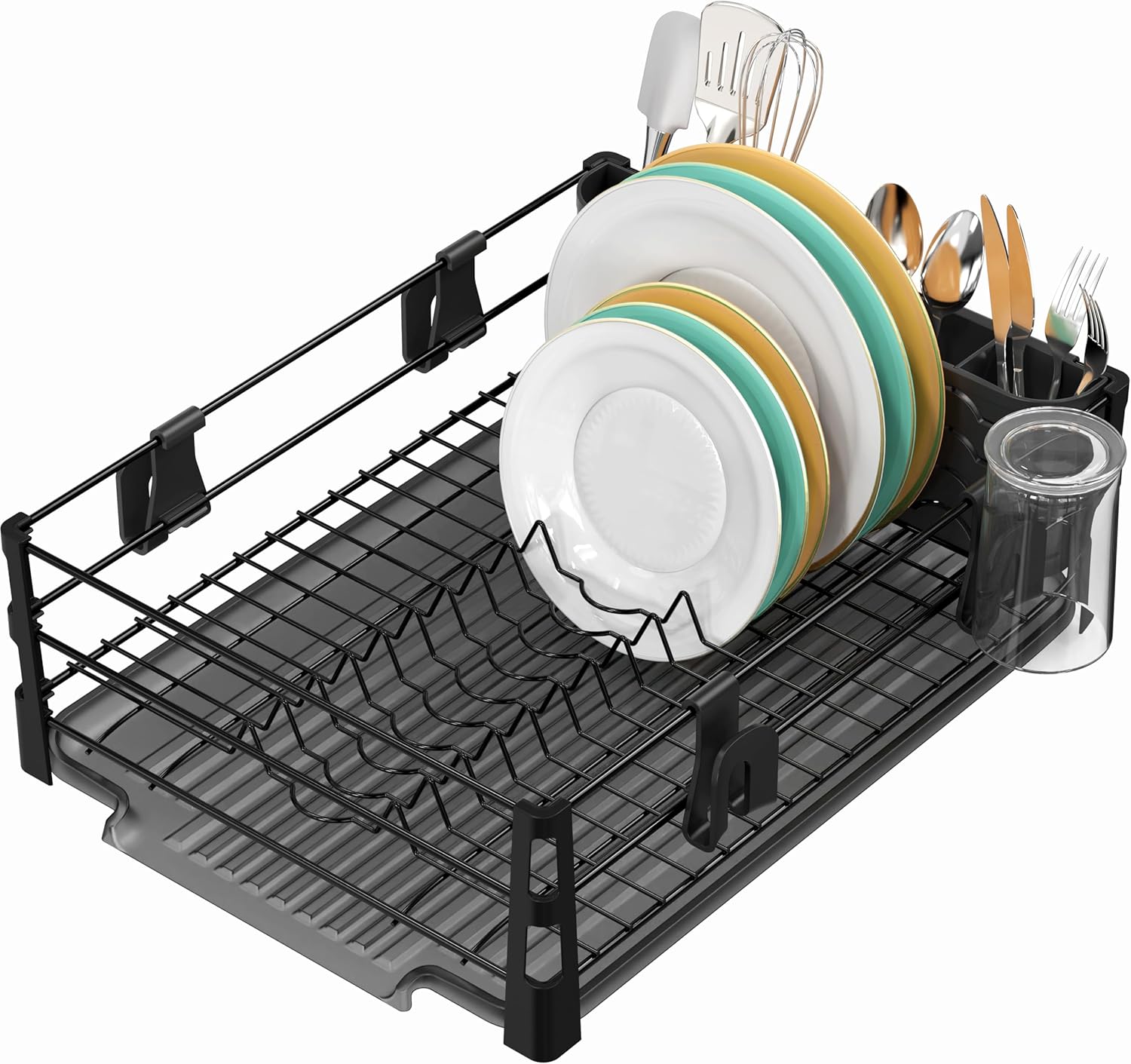 - Multifunctional dish rack set features Included accessories: including 2 Utensil Holders, 4 Mug Hooks, and a Drainers, which can efficiently help you save space.
