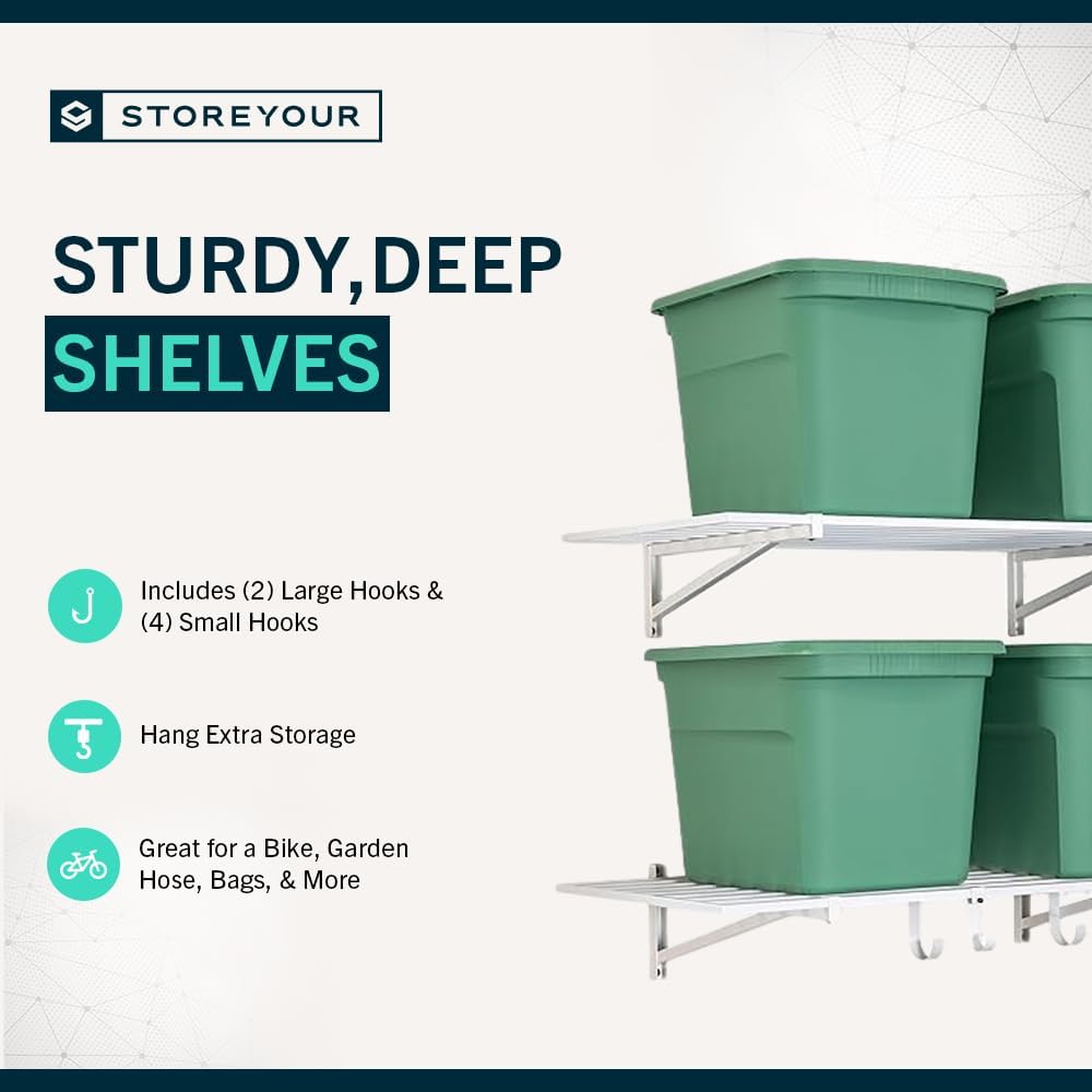 - HEAVY-DUTY STORAGE SHELVES – This 2-pack of wall-mounted garage shelves offers dependable, space-saving storage for any setup. Available in a range of sizes to suit your space, each shelf supports up to 200 lbs—ideal for storing bins, tools, tires, and gear. A solid pick for maximizing wall shelves in your garage, shed, or utility room.