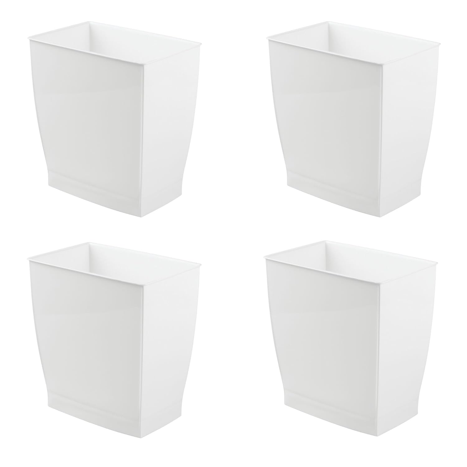 - COMPACT SILHOUETTE - The iDesign Set of 4 Mono Trash Cans display a clean, minimal design that pairs harmoniously with any decor; Its open-top design makes for easy trash disposal and keeps any area neat and orderly; For convenience, the low-profile silhouette nestles neatly into tight corners or fits inside cabinets or under desks for discreet storage; Set of 4