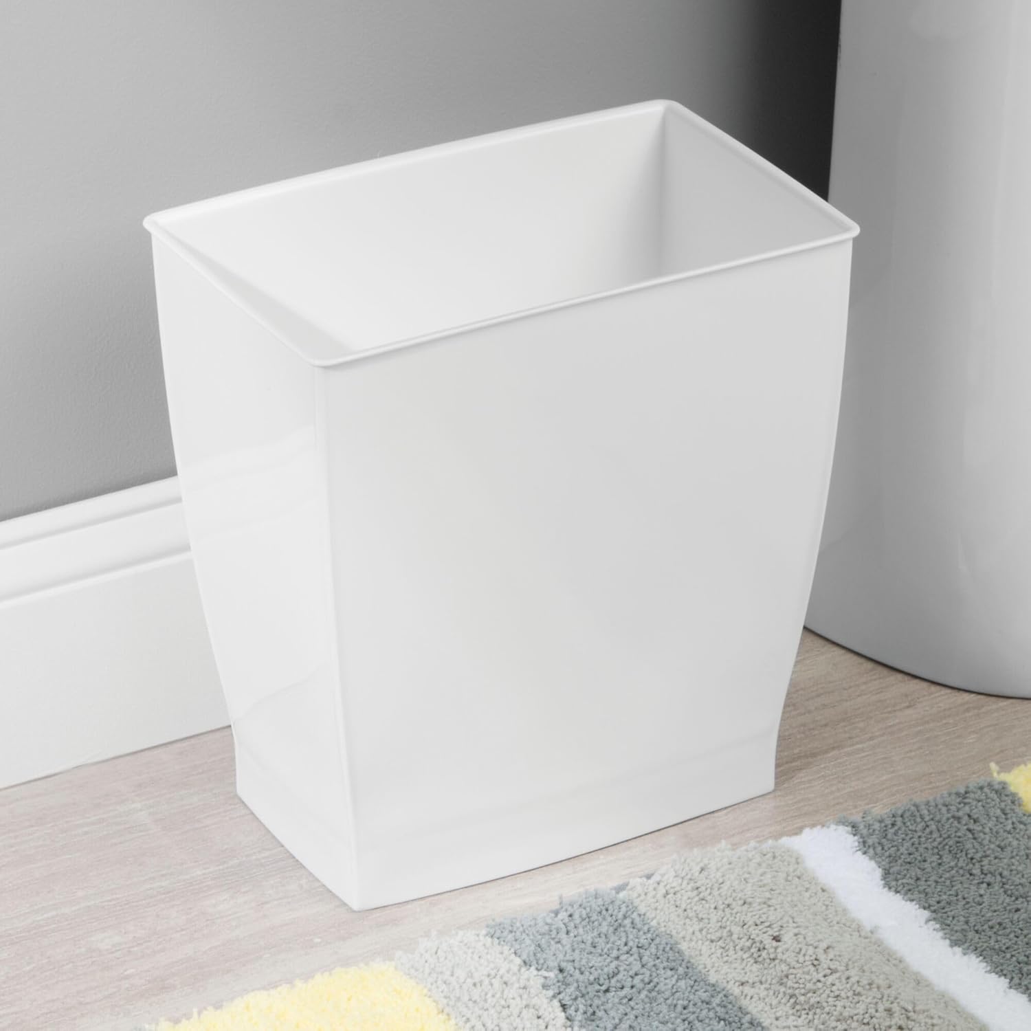 - MODERN STYLE - The polished white finish brings an elevated look to this everyday household essential, making it the perfect finishing touch to any bathroom or home office; Its slim dimensions tuck into the slimmest of spaces throughout the home