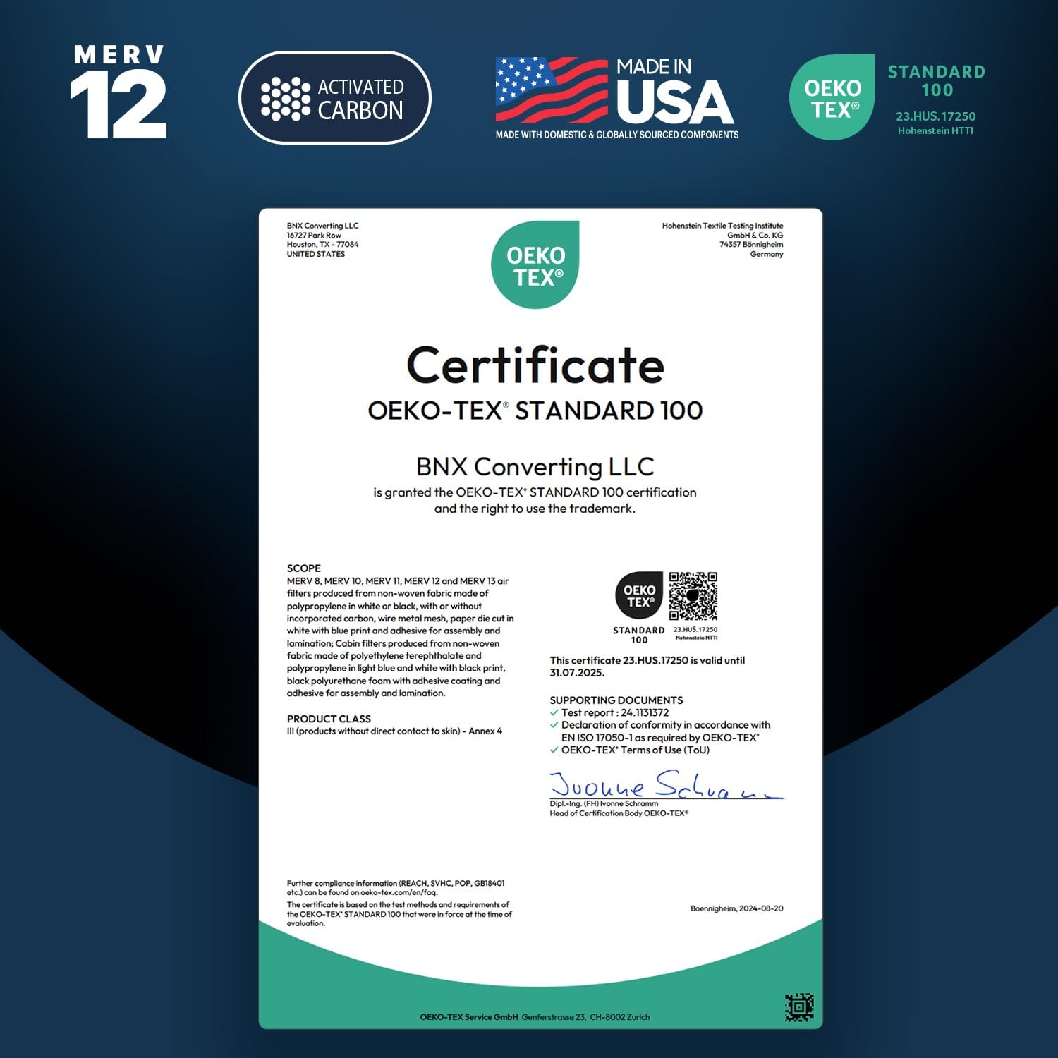 - CAPTURES MICROSCOPIC PARTICLES - The BNX air filter has a MERV 12 rating allowing it to capture 93% of microscopic airborne particles (3-10 um) without impacting air flow. Captures microscopic particles such as virus-carriers, bacteria, odors, smoke, and pollen, pet dander, allergens, dust, lint, mold, dust mites, smog. Noticeably cleaner air in 48 hours.