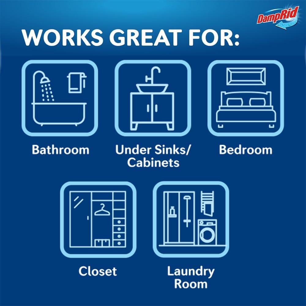 - VERSATILE APPLICATION: This moisture absorber is ideal for closets, bathrooms, laundry rooms, pantries, and under sinks or cabinets.