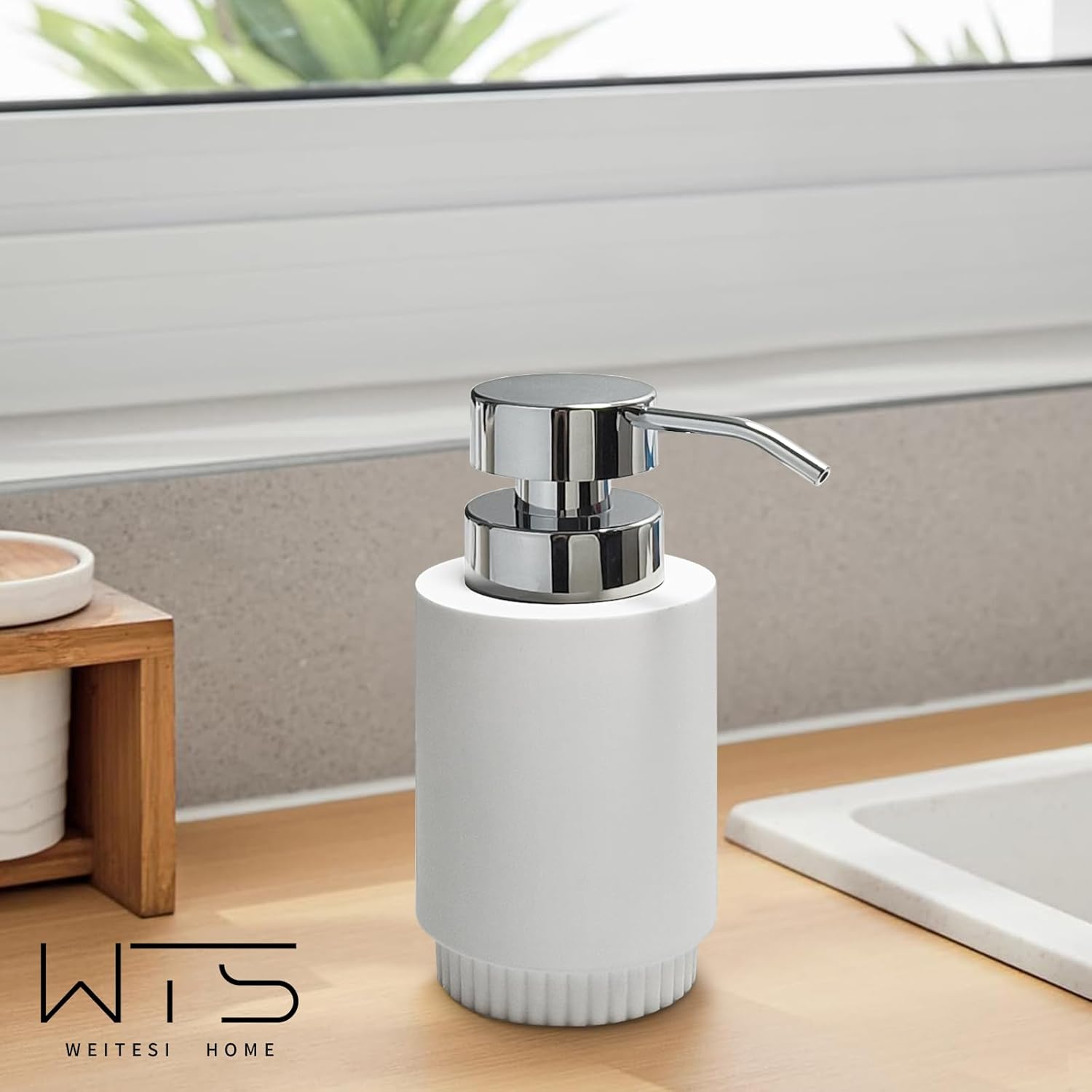 - Durable Construction with Reliable Plastic Pump: Crafted from premium resin, this soap dispenser is designed for exceptional durability, ensuring it stands up to daily use without chipping or cracking. The high-quality plastic pump is easy to press, delivering just the right amount of soap or shampoo every time, providing dependable performance for years to come.High-quality plastic pump do not rust and have a long service life.