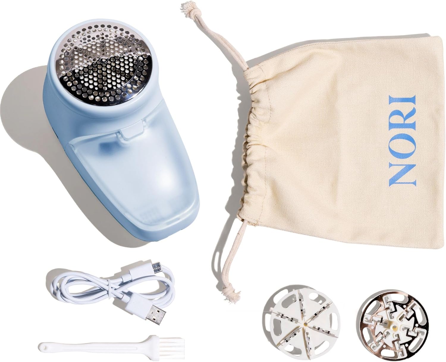 Nori Trim Fabric Shaver - Lint Remover for Clothes & Furniture Couch Pilling - Sweater Pill Remover - Clothes Shaver with 6 Precision Blades - Wireless and Rechargeable - Blue