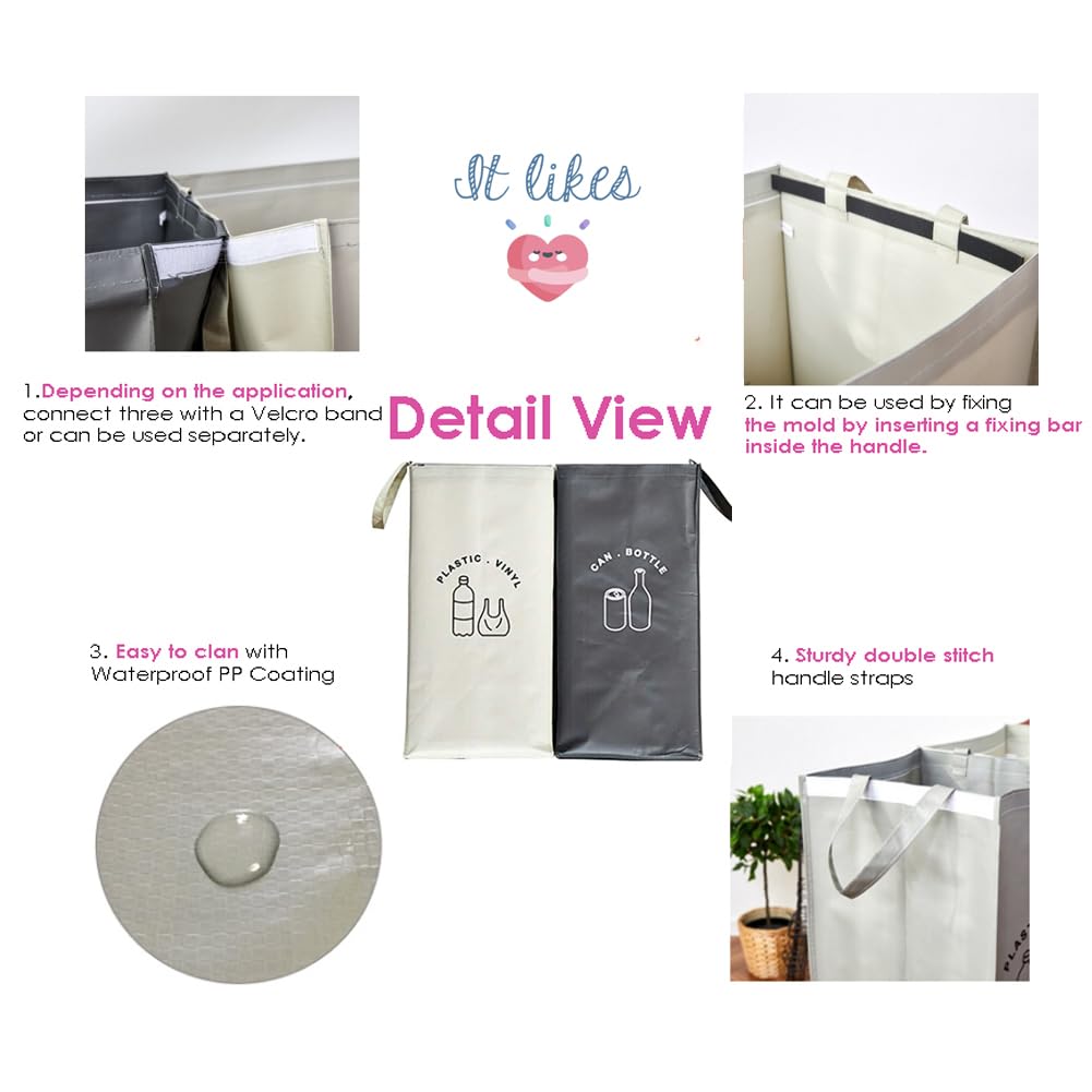 Separate Recycling Waste Bin Bags for Kitchen Home Recycle Garbage Trash Sorting Bins Organizer Waterproof Baskets Compartment Container (Set of 2 Color Pack)