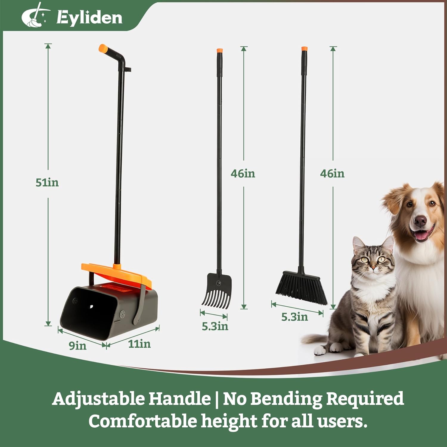 Eyliden Pooper Scooper Broom Set, Include - Dustpan with Lid, Rake, Broom, 35 Waste Bags, 46" Adjustable Long Handle - Yard Lawn Garden Dog Pooper Scooper Leaf Rake, Dust Pan and Broom Combo
