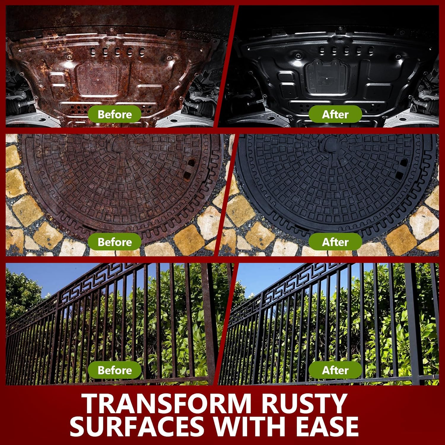 - SUPERIOR OXYGEN ISOLATION: Anti rust coating rust into an inert coating, locking water and air out, so oxidation cannot occur, providing long-lasting protection for metal surfaces.