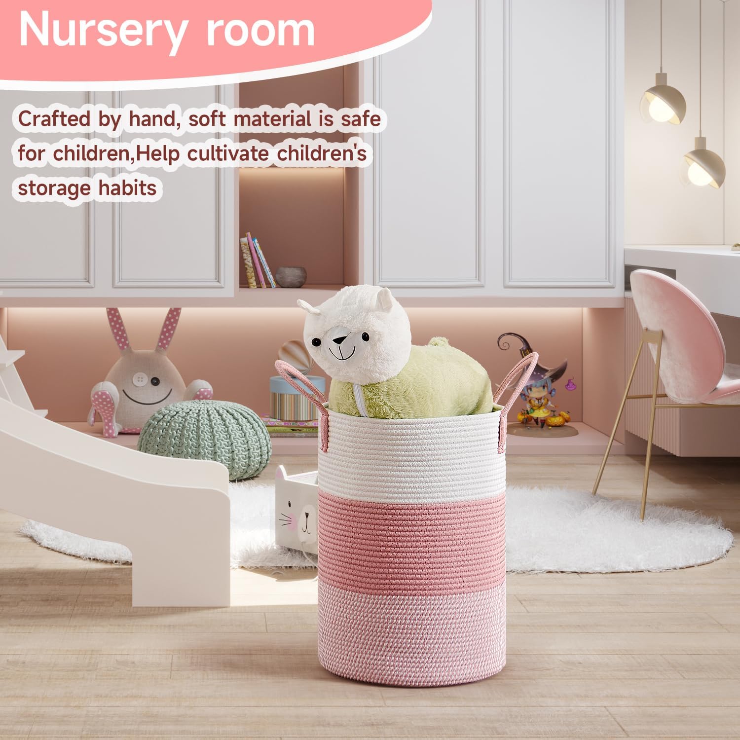 CLHMILY&Z 40L Laundry Basket Round Storage Rope Basket - 13x18 Inches - Pink Hamper in Bedreoom and Cute Storage Bin for Blankets, Toys, and Nursery Essentials