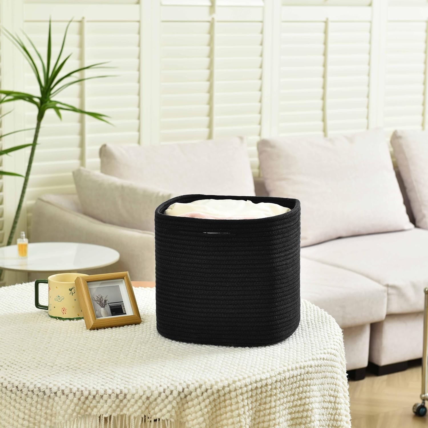 3 Pack Storage Cubes 11 Inch Cotton Rope Woven Baskets for Organizing Cube Bin Square Shelves Organizer,Classroom,Kids Toy Bins,Closet,Baby Nursery(Black)