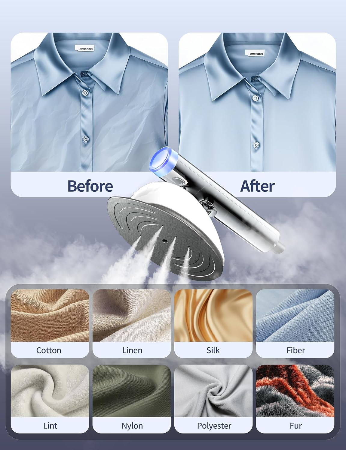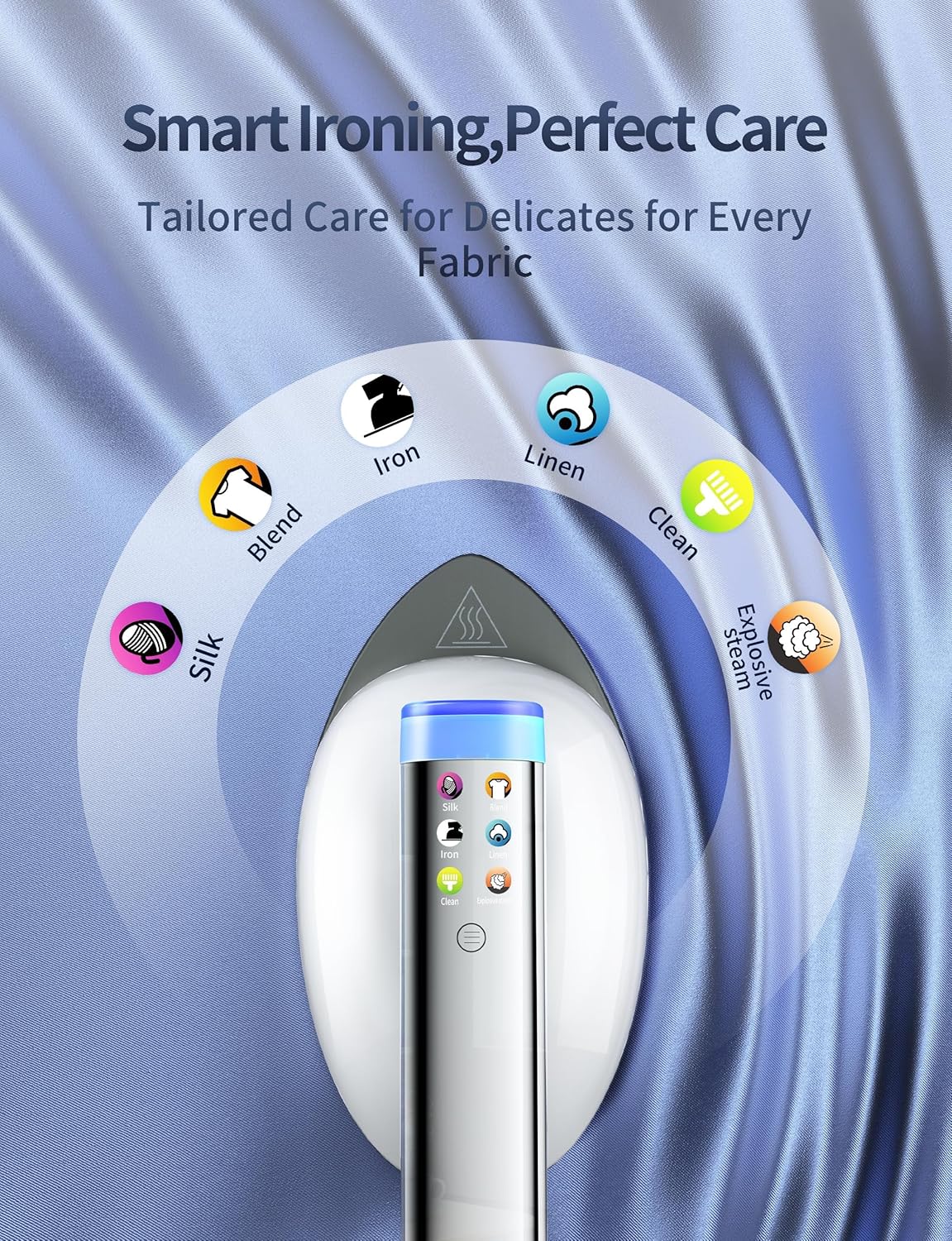 - 【6 Professional Steam Modes】Silk (delicates), Blend (mixed fabrics), Liner (light garments), Iron (stubborn wrinkles), Clean (sanitizing high steam), and Explosive Steam (heavy fabrics). Smart presets eliminate guesswork—select with one touch for perfect results every time