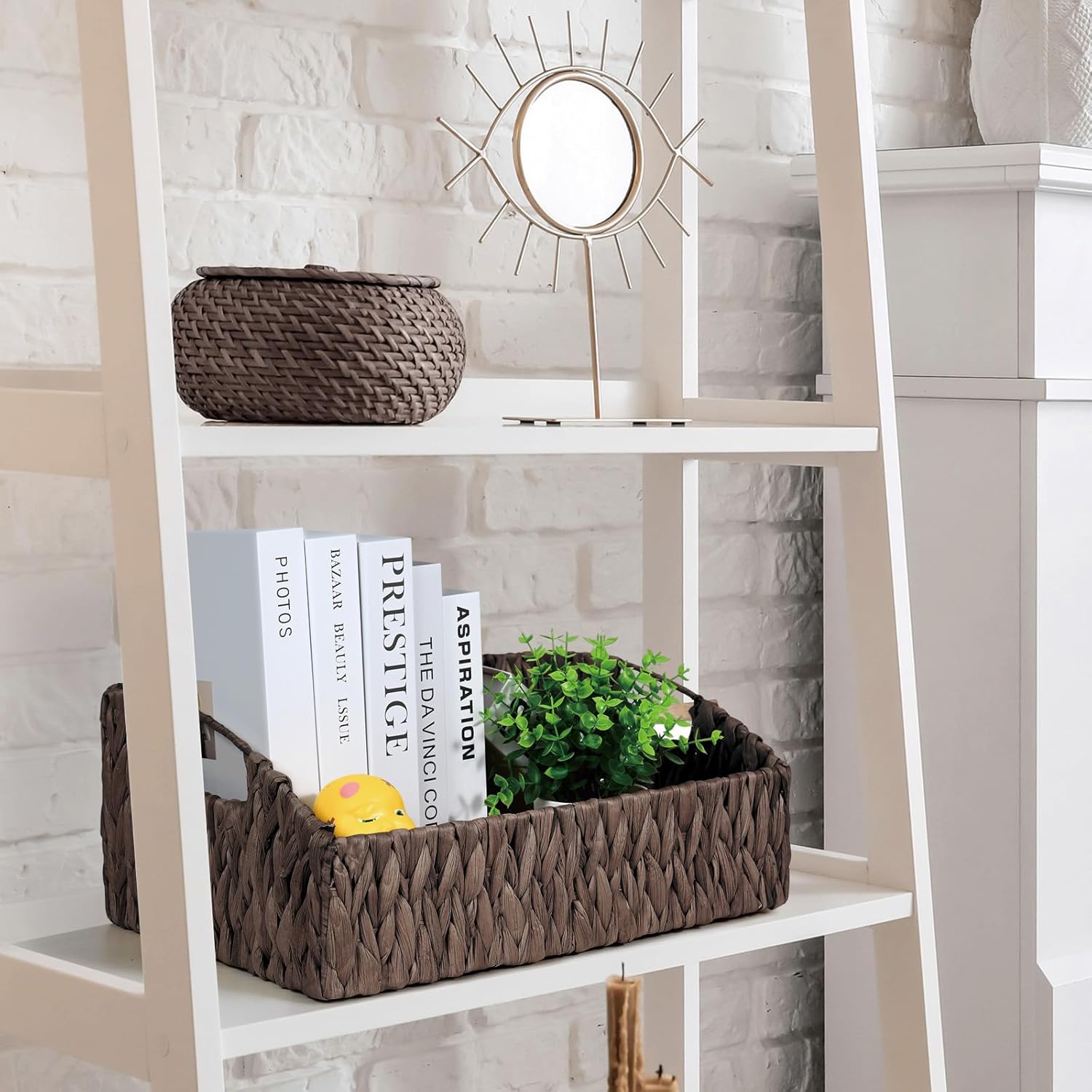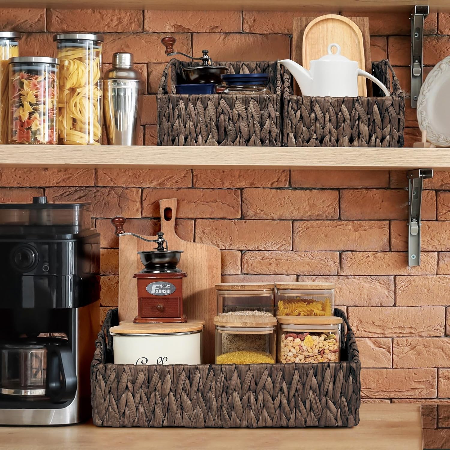 Ollieroo Natural Water Hyacinth Storage Baskets, Handwoven Wicker Storage Bins with Built-in Handles, Storage Container Baskets for Shelves, Bedroom, Bathroom, Laundry Room or Kitchen(Black)