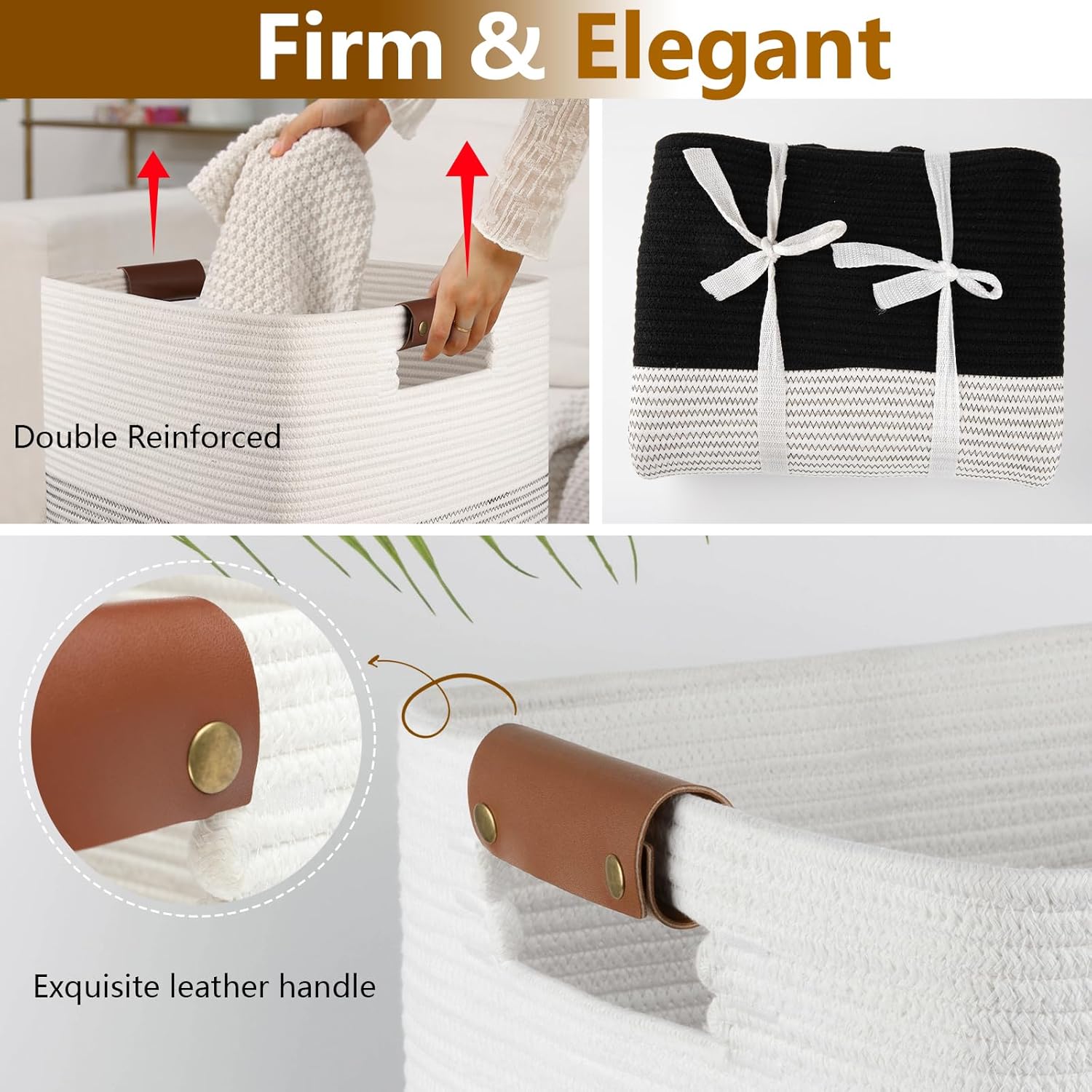 - Natural Handmade & Unique Design: The special hand-woven design makes the style of our blanket basket simpler, the classic color blend seamless with any room decor. The elegant leather handles not only take care of your hands but also add a distinctive highlight to our large baskets