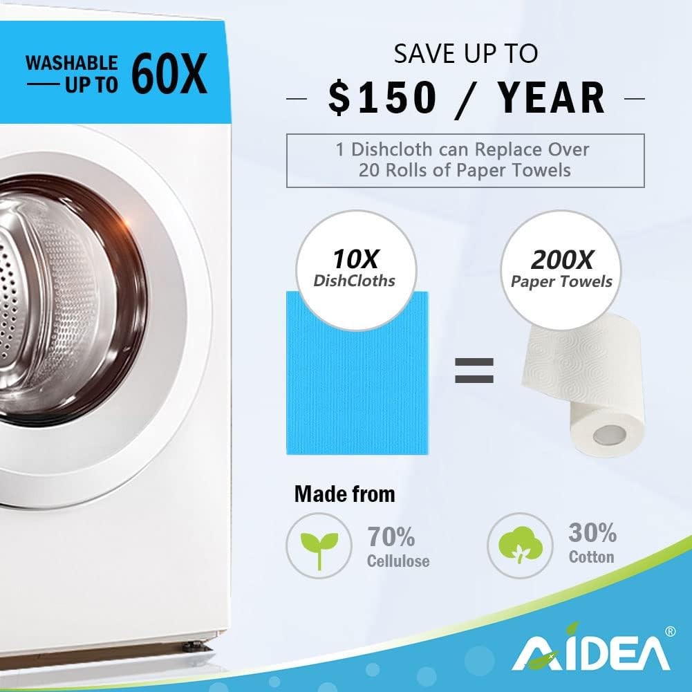 - Enduring & Resilient: AIDEA Swedish kitchen towels withstand numerous uses and wash cycles without losing effectiveness; machine washable and can be sanitized in the dishwasher or microwave; effectively extend the lifespan of the cloth