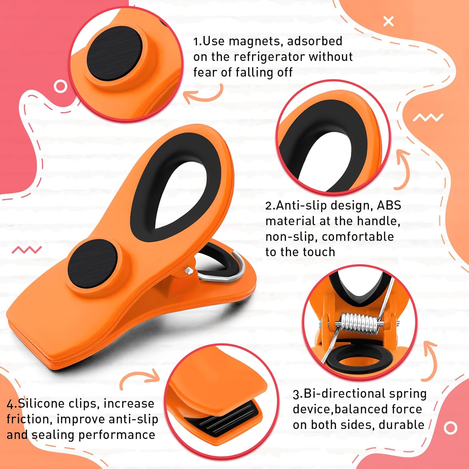 - Magnetic design: these chip bag clips are designed with a magnet on the back, which allow you to stick it on refrigerator, blackboard, glass and other surfaces, easily display your photo, daily schedule, artwork, memo notes and other small items, not easy to slip or fall off