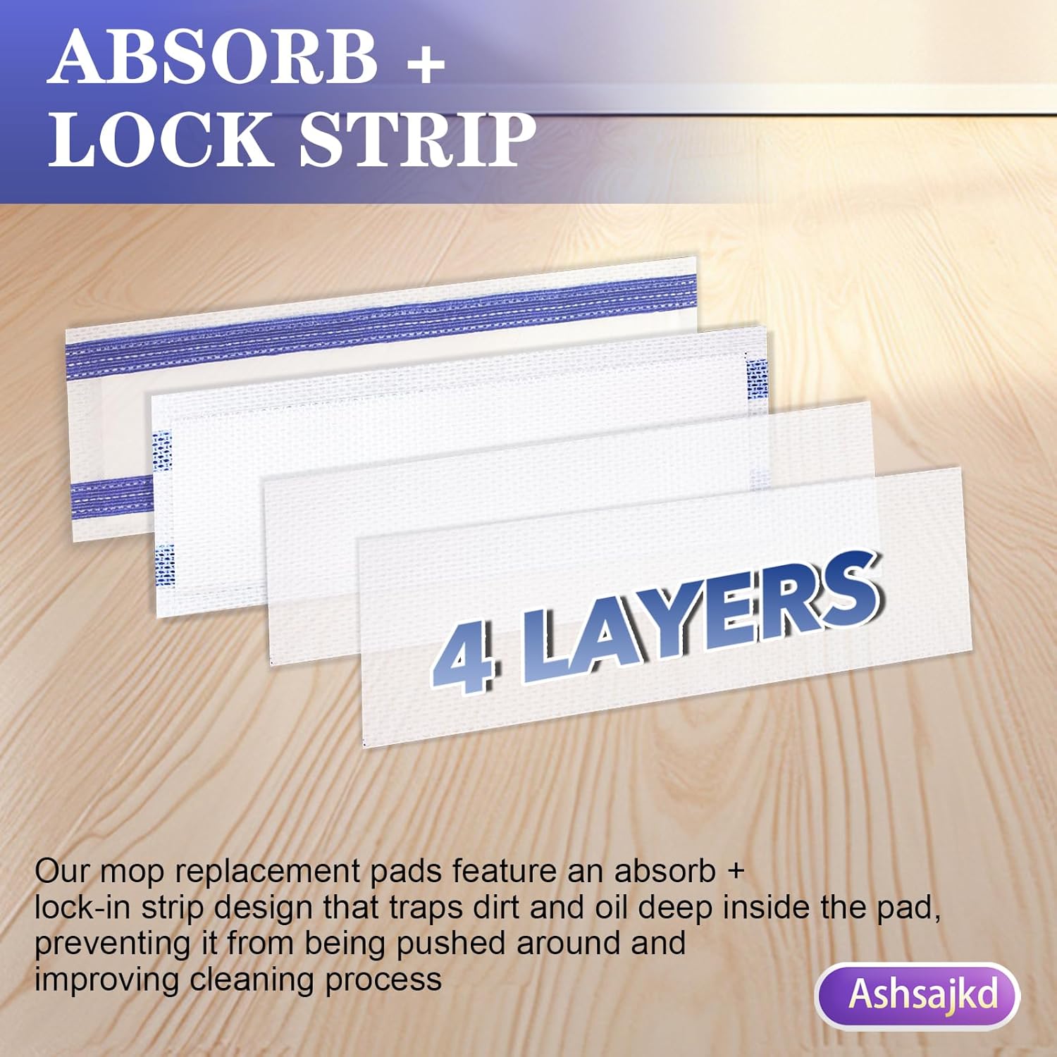 - Efficient Cleaning Power: Our mop replacement pad is made of microfiber Absorb + Lock Strip technology helps picking up dust,dirt and remove stubborn stains, leaving floors spotless with minimal effort