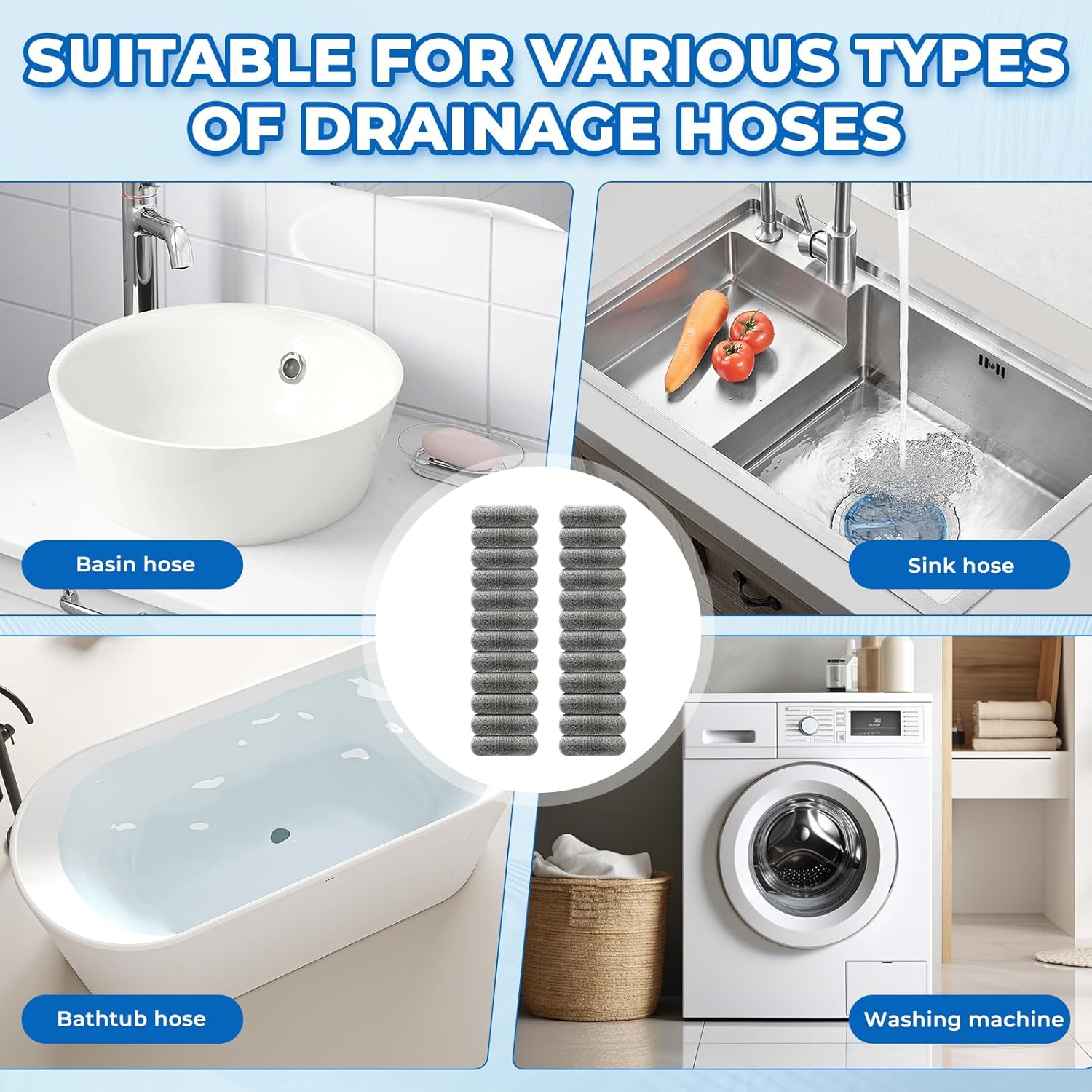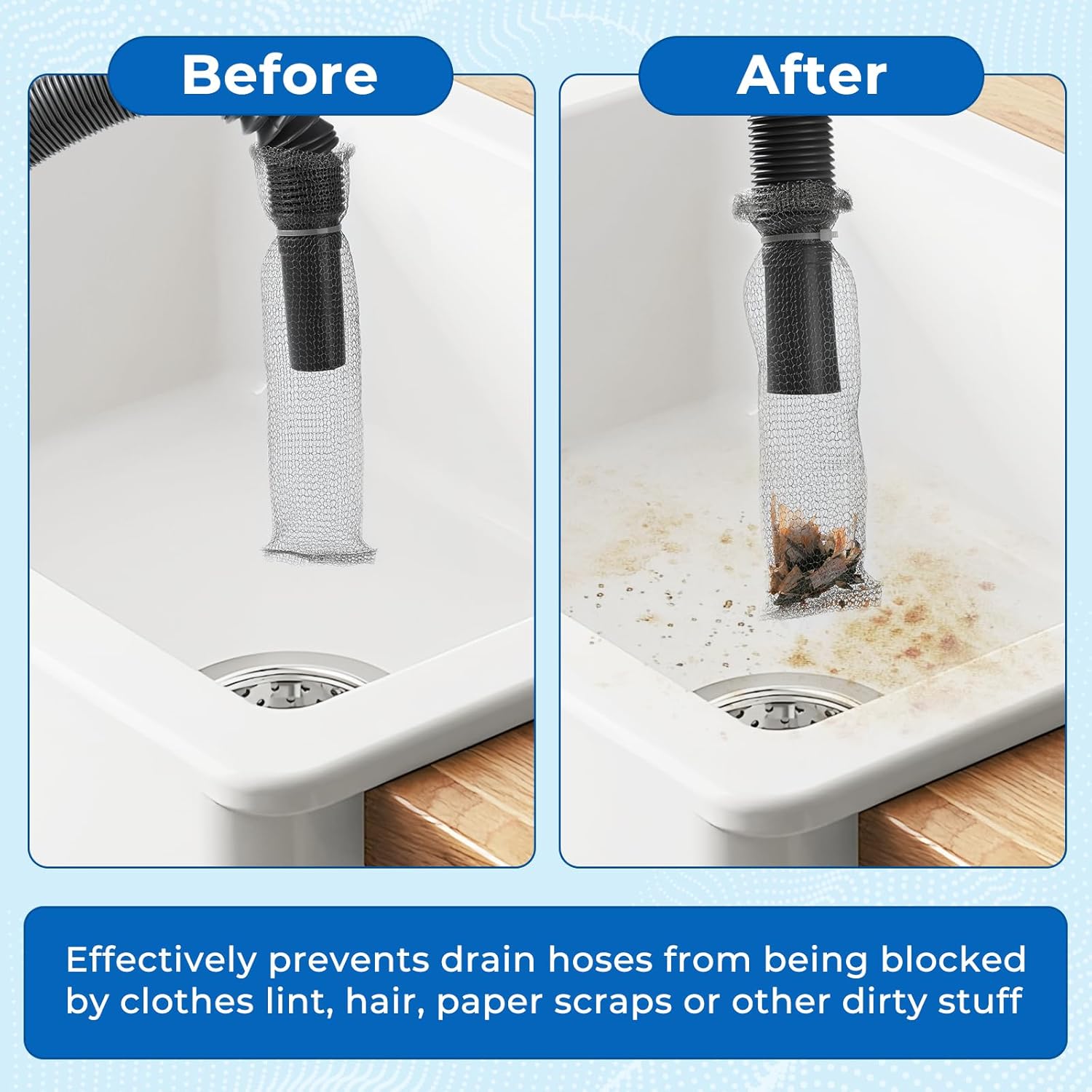 - Wide range of uses: the lint traps is suitable for washbasin, sink, bathtub, washing machine and other drain hoses, can be very good at catching lint, hair, paper towels and even pet hair, etc., which can greatly reduce the risk of sewer clogging