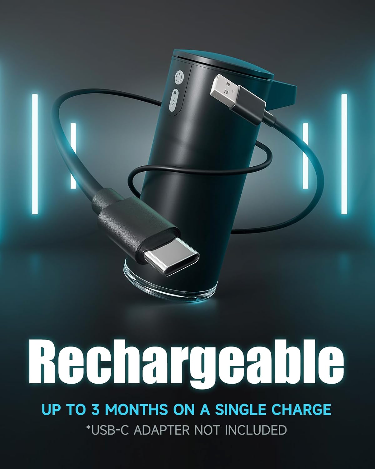 - Say Goodbye to Batteries - Enjoy universal Type-C charging, one full charge powers up to 12,000 dispenses and lasts around 3 months with light household use