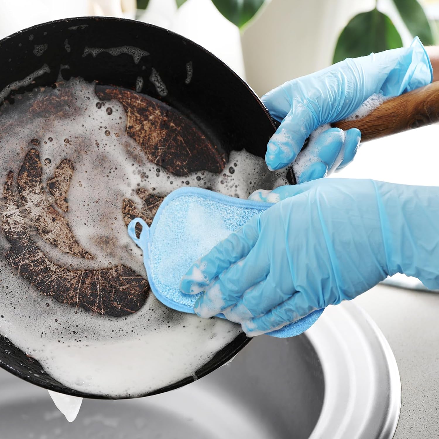 - Durability and Absorptivity: consist of gentle PVC, polyester fiber, the middle part of this dish scrubbing sponge is polyurethane high density inner sponge, which features nice absorption and won't leave marks or scratches after use, last longer than traditional cleaning sponges and not easy to deform