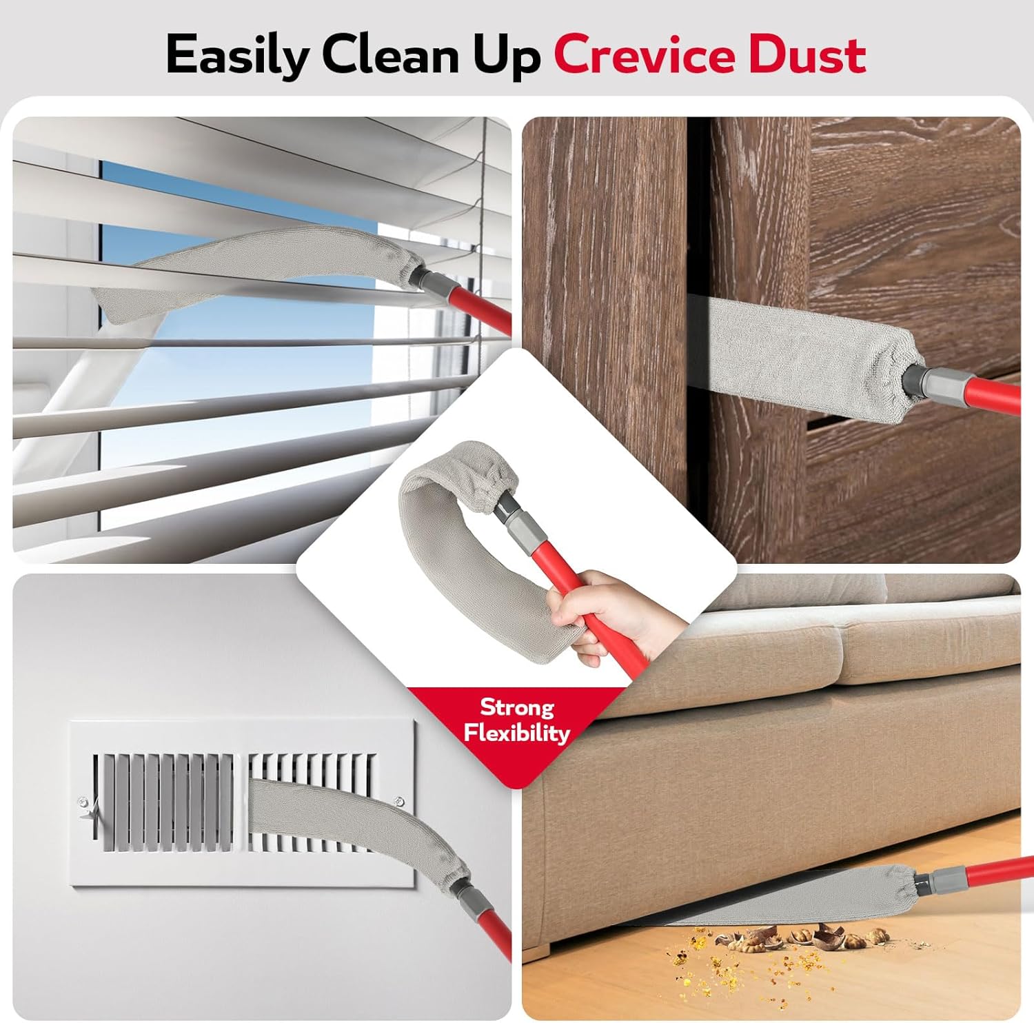 - lengthened Microfiber Feather Duster And Gap Duster: Extended microfiber reaches corners and generates static electricity to trap dust. Shake off or rinse to clean. Ideal for furniture, bookshelves, light fixtures, and high spots. Bendable for hard-to-reach areas,The angle of the duster brush can be flexibly adjusted as needed to clean dust from the corners of furniture, and it can also be attached to the extension pole to clean cobwebs from the corners of ceilings. Great for cleaning dust up to your household appliances, fan, cars, cobweb or down on gaps, the bottom of household appliances, furniture, window blinds, photo frames, and corner, gap, or your walls.