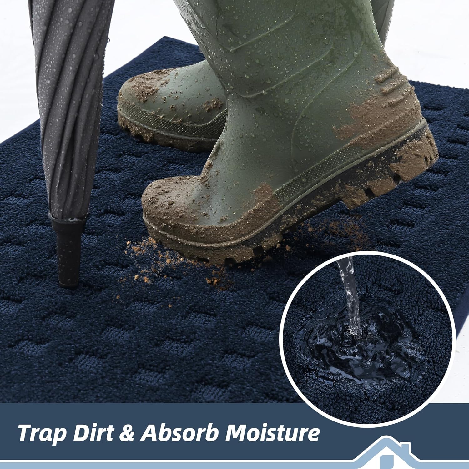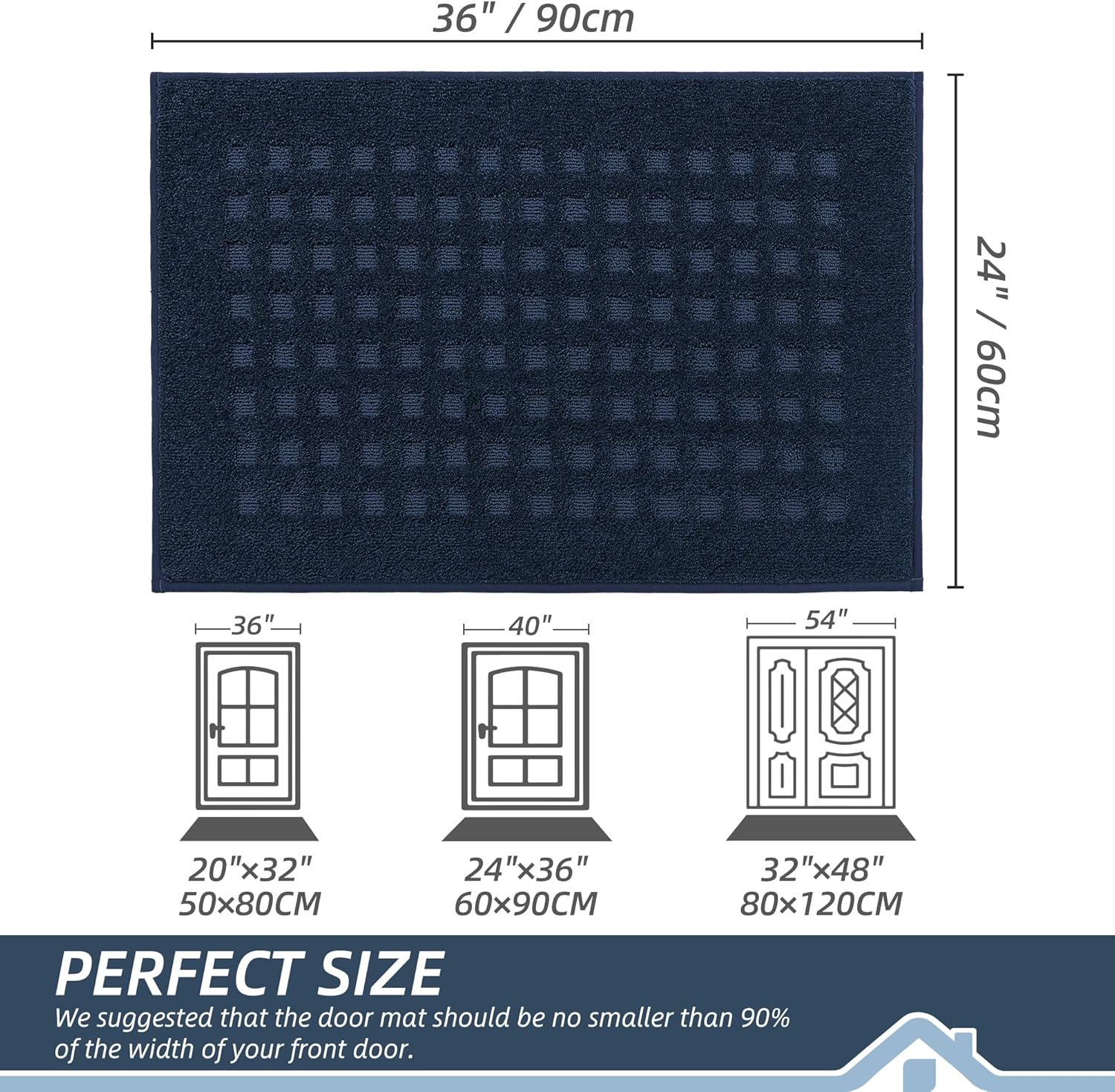 BEQHAUSE Waffle Door Mats Indoor 24"x36", Dog Mat for Muddy Paws Absorbent and Dirt Resist Floor Mats Non-Slip Washable Rugs for Entryway, Welcome Mat for Front Back Door, Muddy Wet Shoes, Navy Blue